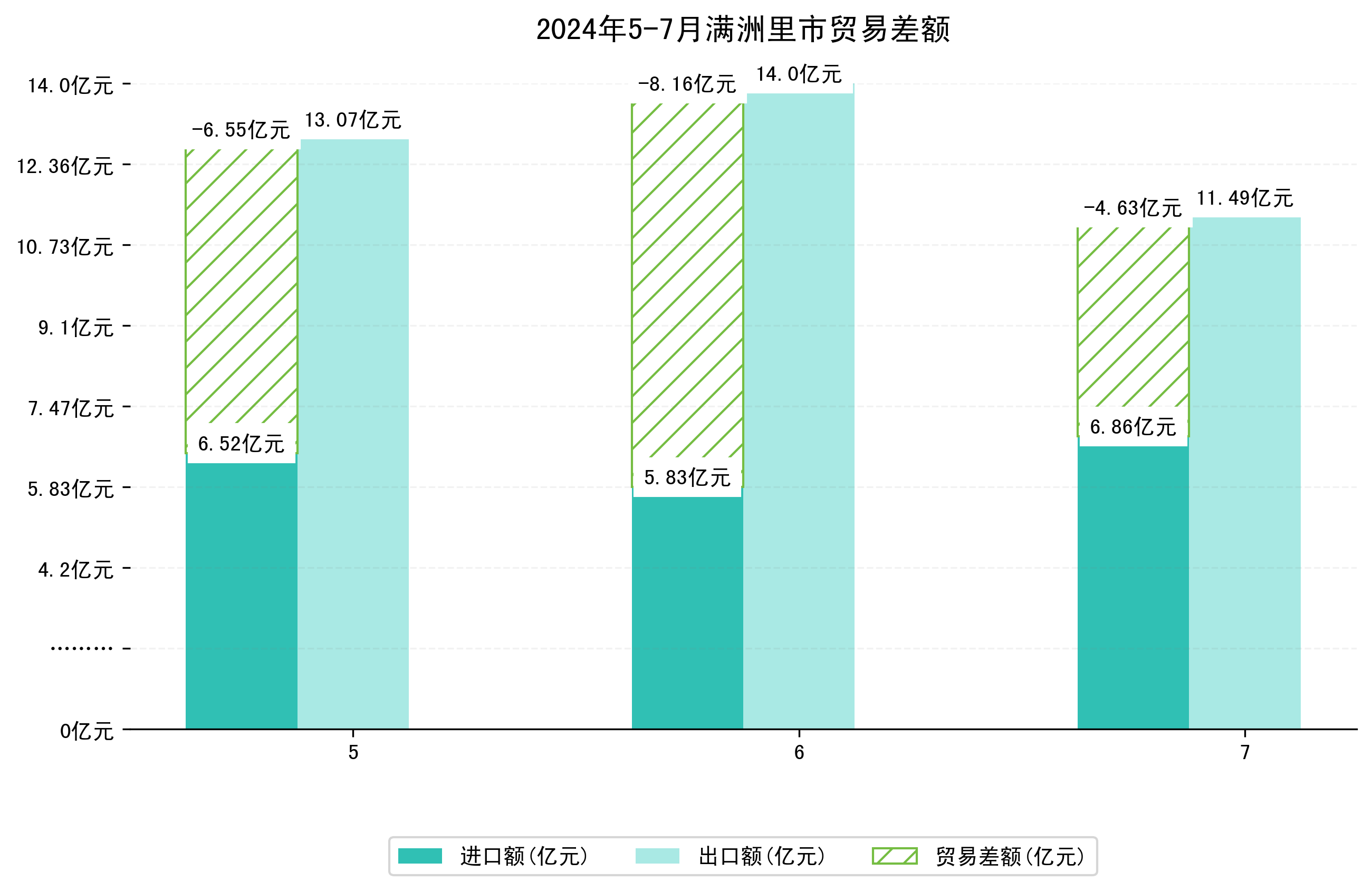 2024年7月满洲里市进出口总额及进出口差额统计分析