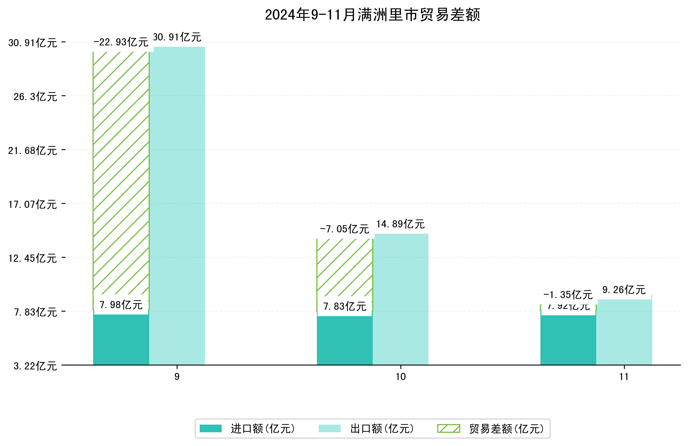 (图四:2024年9-11月满洲里市贸易差额)