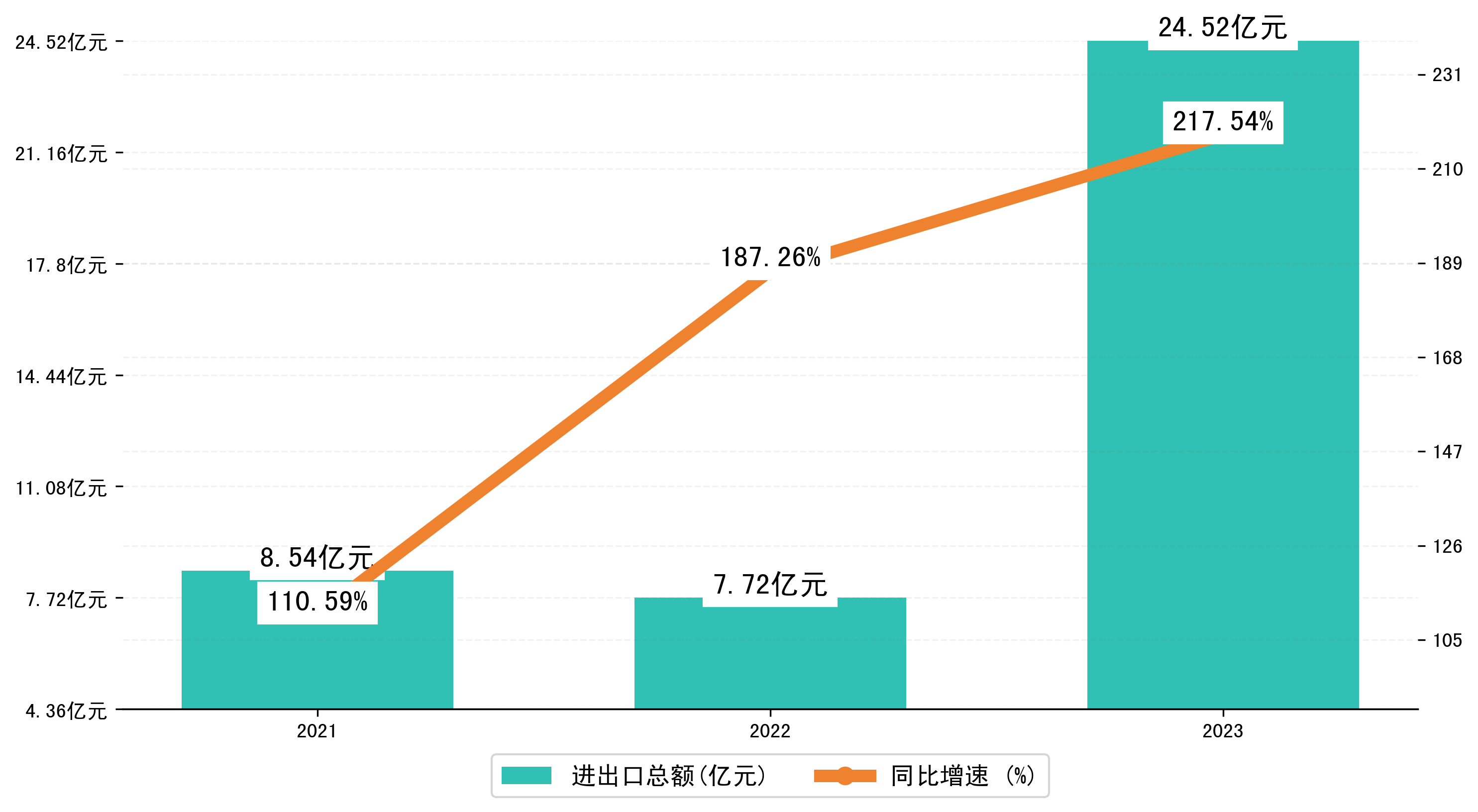 以人民币计,2023年1-1月满洲里市进出口总额为24,5220.4328万元,相比上年同期增加了16,7994.4625万元,同比增加了217.90%。