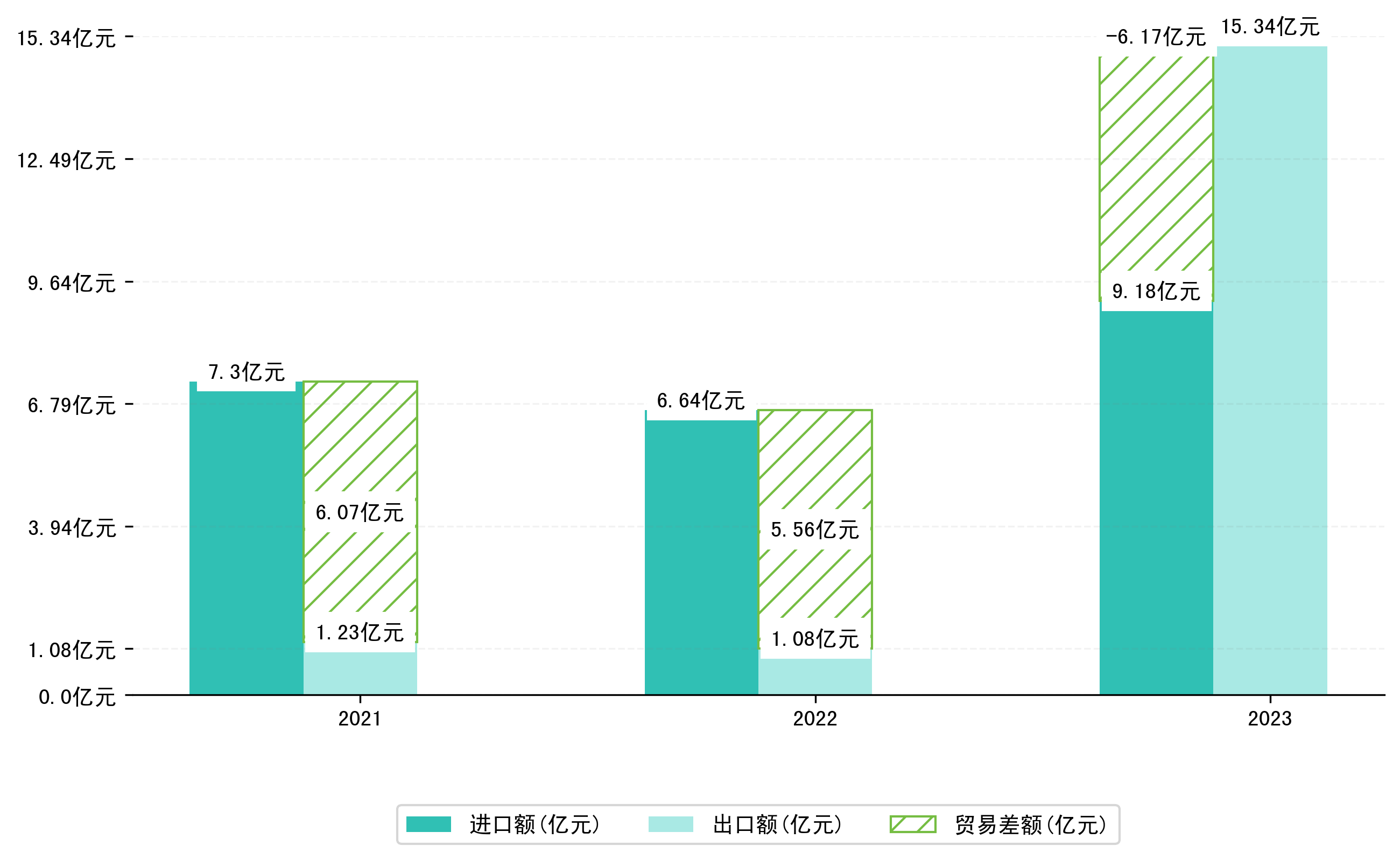以人民币计,2023年1月满洲里市贸易差额为6,1657,2490万元(贸易顺差),相比上月增加了2,1989,6522万元,即3444,4132万美元;相比上年同期增加了11,7215,6019万元,同比增加-210.98%。