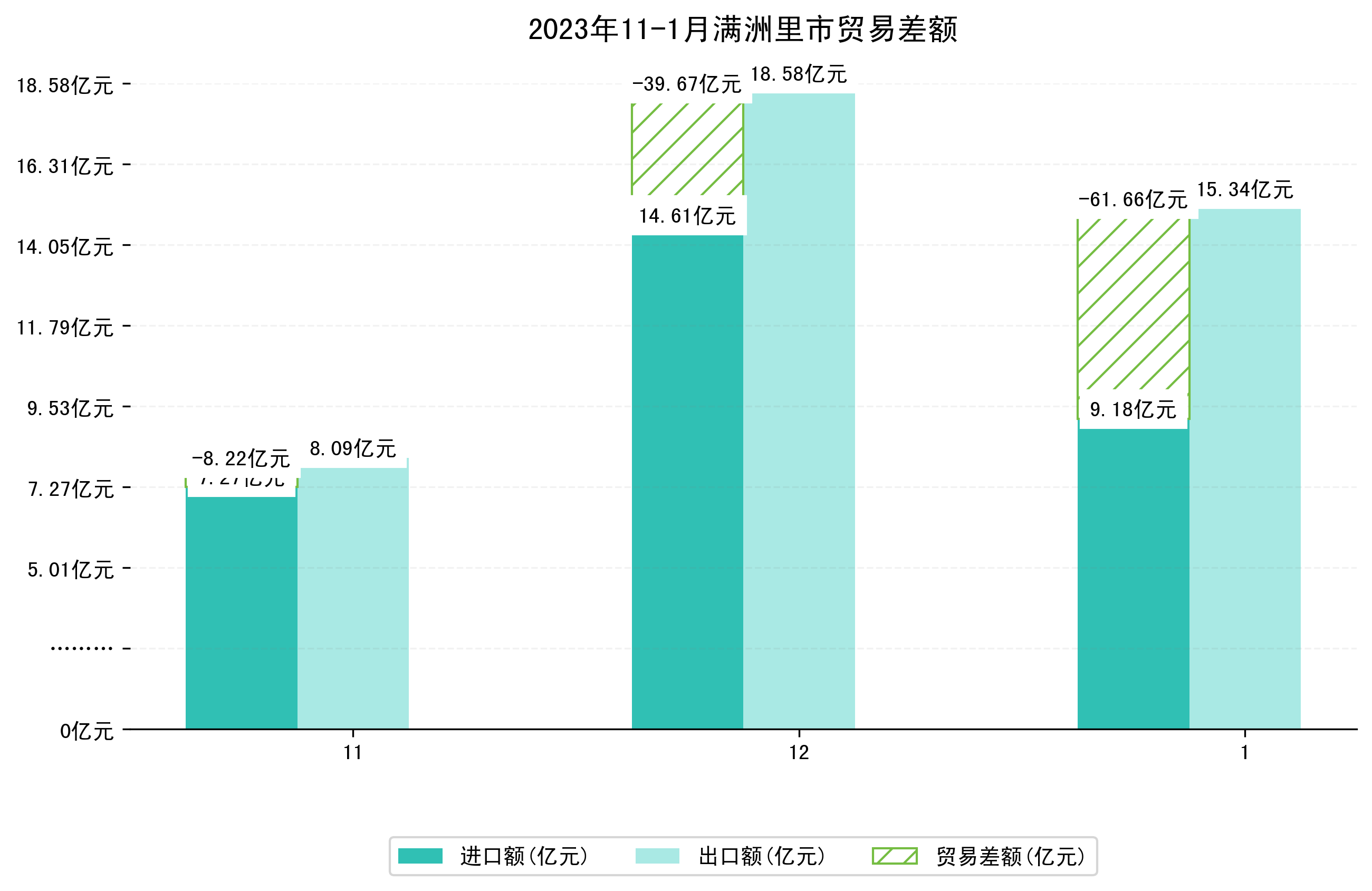 (图四:2023年11-1月满洲里市贸易差额)