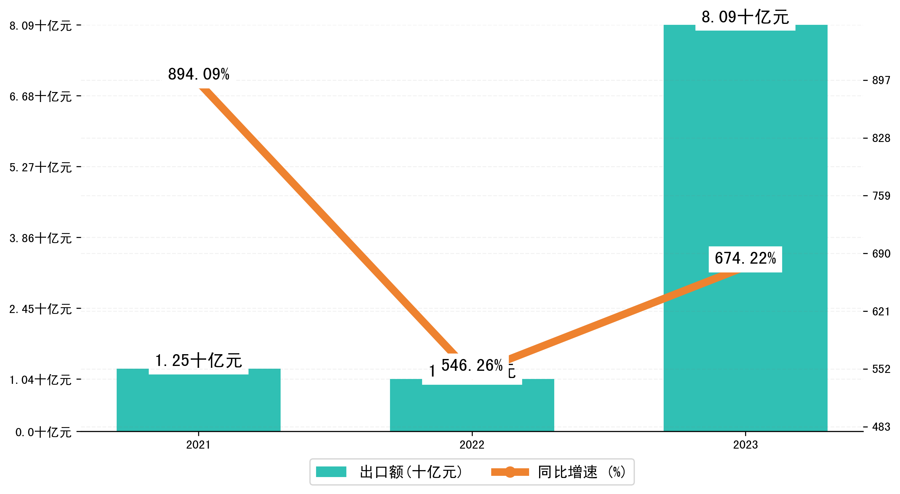 以人民币计,2023年1-6月满洲里市出口额为80,8586.804万元,相比上年同期增加了70,4147.7085万元,同比增加了674.00%。