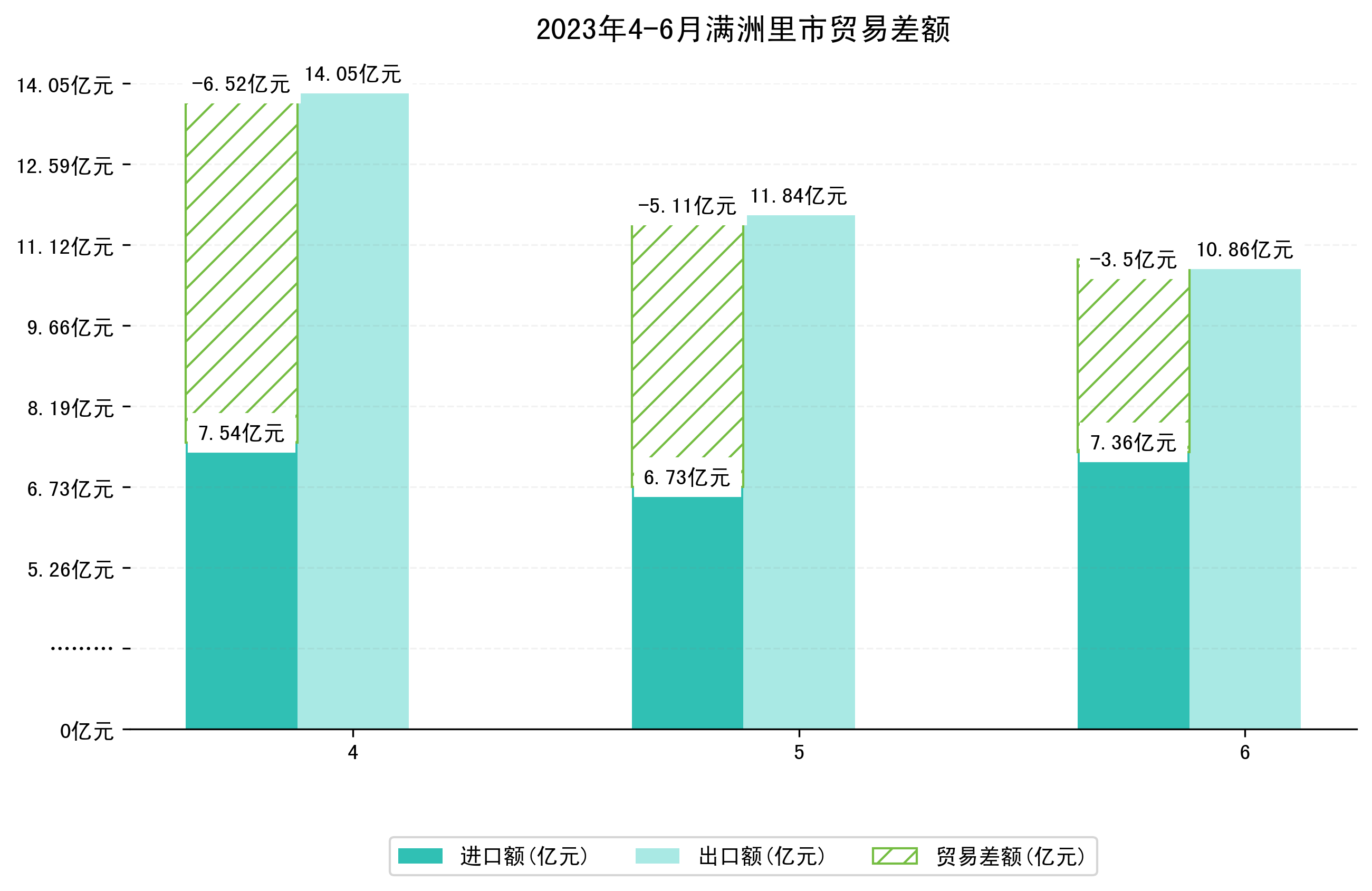 2023年6月满洲里市进出口总额及进出口差额统计分析