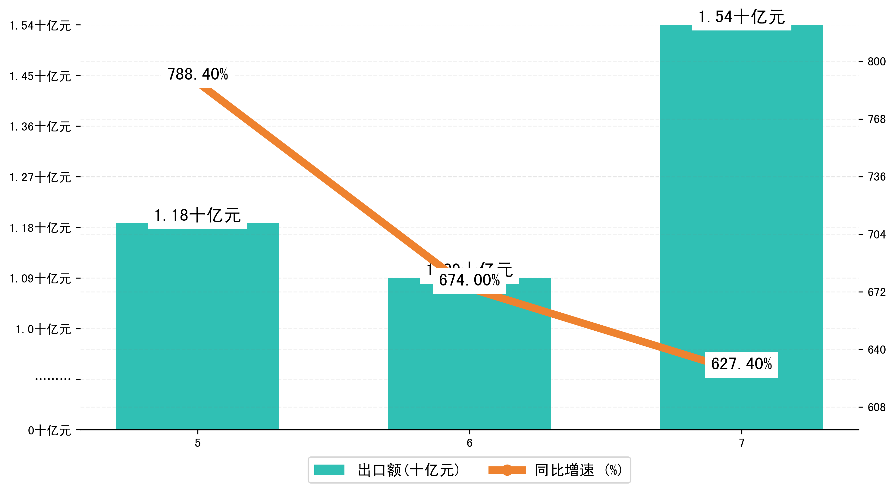 以美元计,2023年1-7月满洲里市出口额为13,8319.4238万美元,相比上年同期增加了11,7951.3907万美元,同比增加579.00%。
