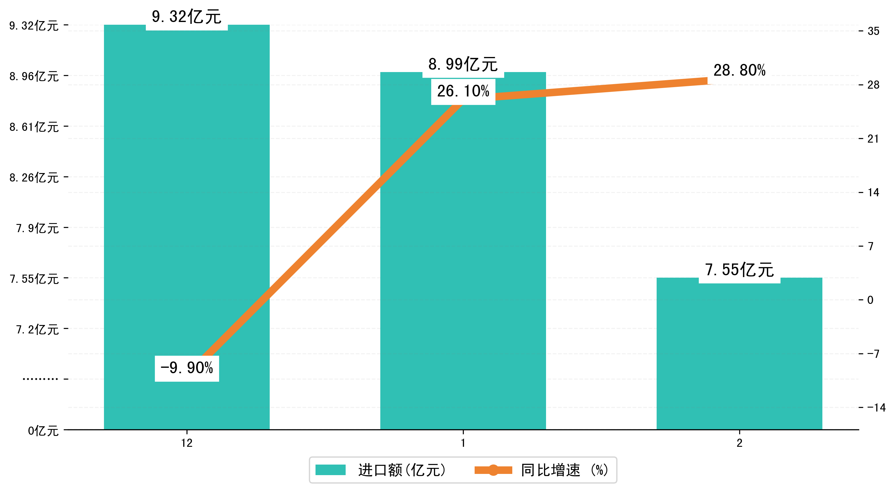 以人民币计,2025年1-2月满洲里市进口额为16,5365.4527万元,相比上年同期增加了3,7047.8281万元,同比增加了28.80%。