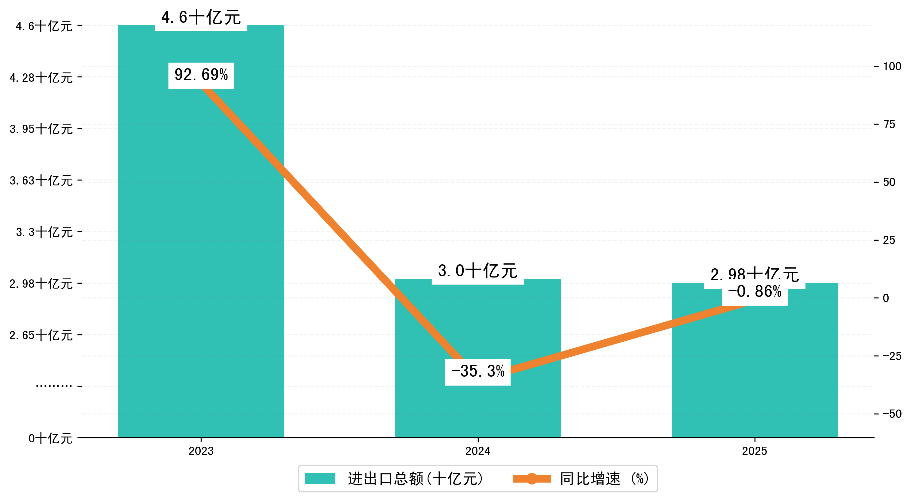 以美元计,2025年1-2月满洲里市进出口总额为4,1396.7423万美元,相比上年同期减少了899.1859万美元,同比减少-2.20%。