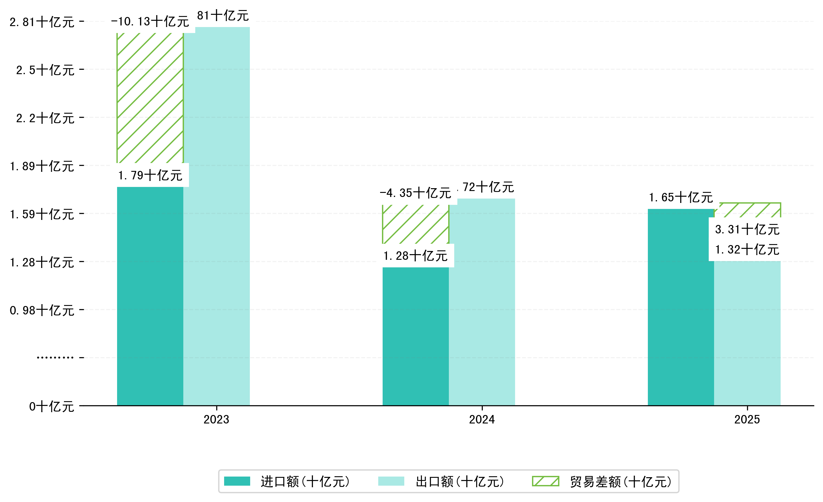 以美元计,2025年1-2月满洲里市贸易差额为4582,8097万美元(贸易逆差),相比上年同期减少了1,0731,6977万美元,同比减少-174.53%。