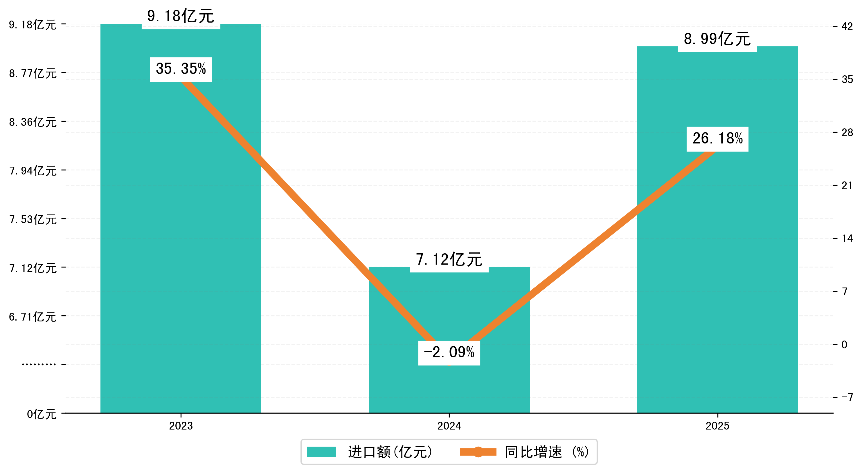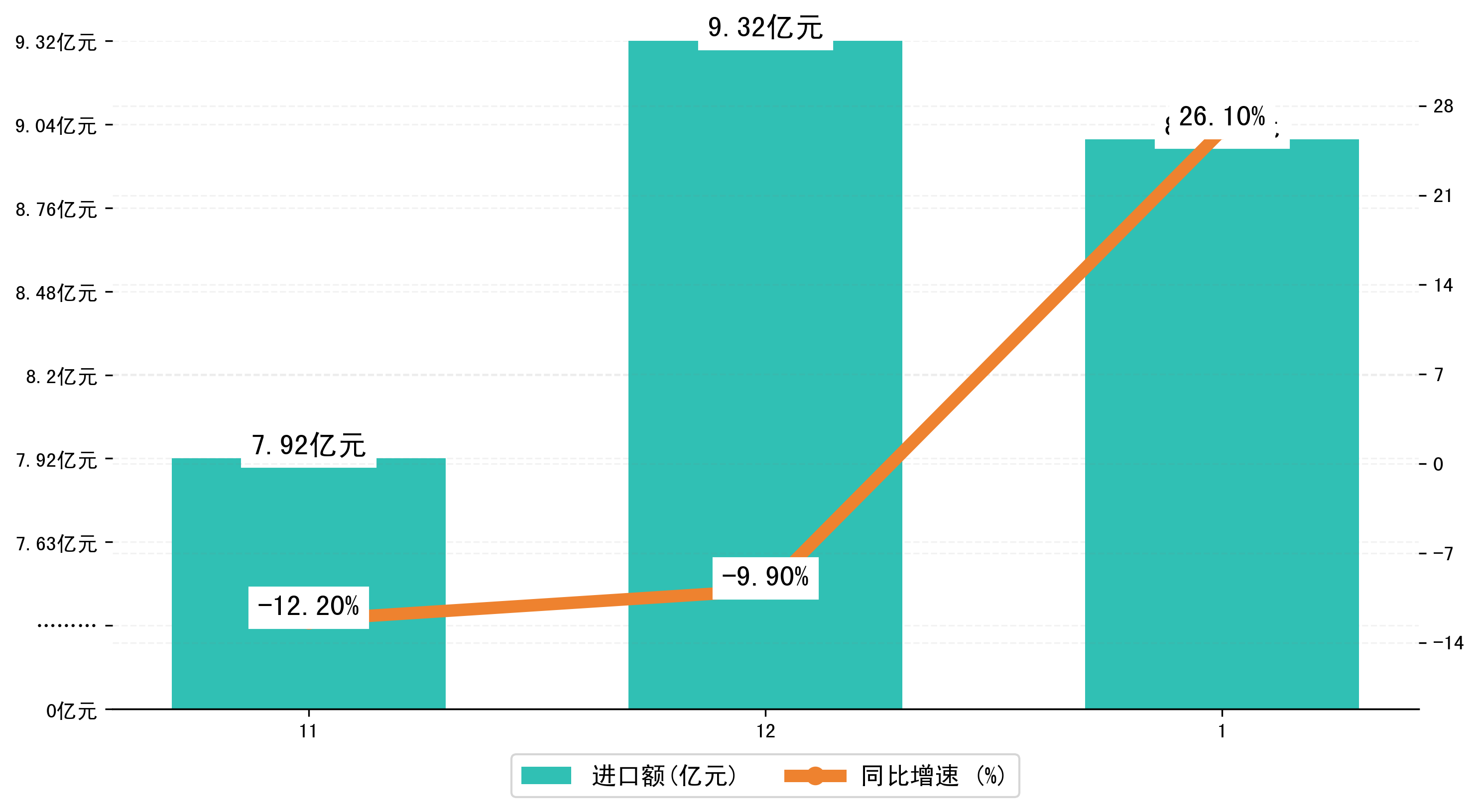 以人民币计,2025年1-1月满洲里市进口额为8,9862.1708万元,相比上年同期增加了1,8643.7385万元,同比增加了26.10%。