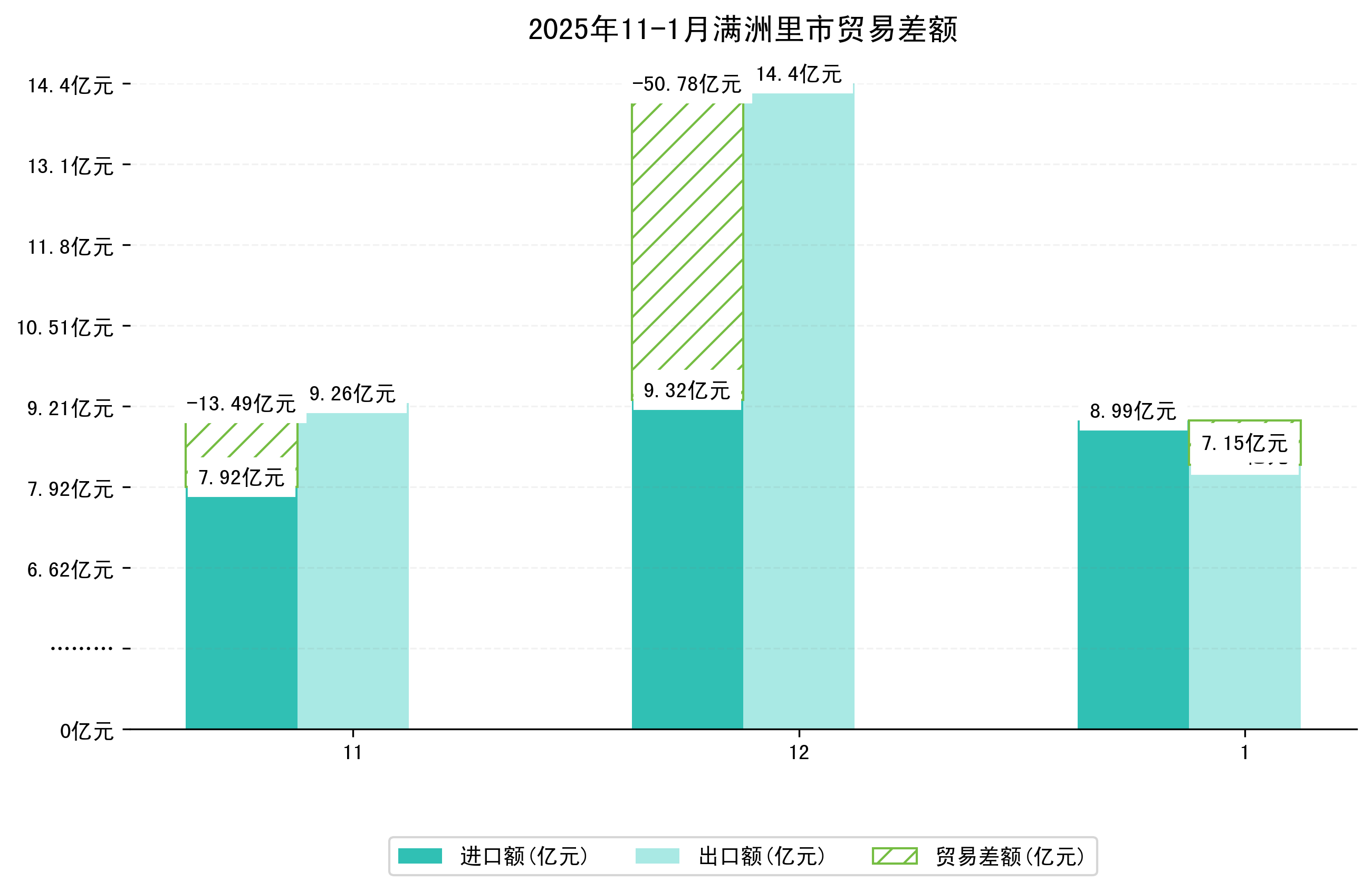 2025年1月满洲里市进出口总额及进出口差额统计分析