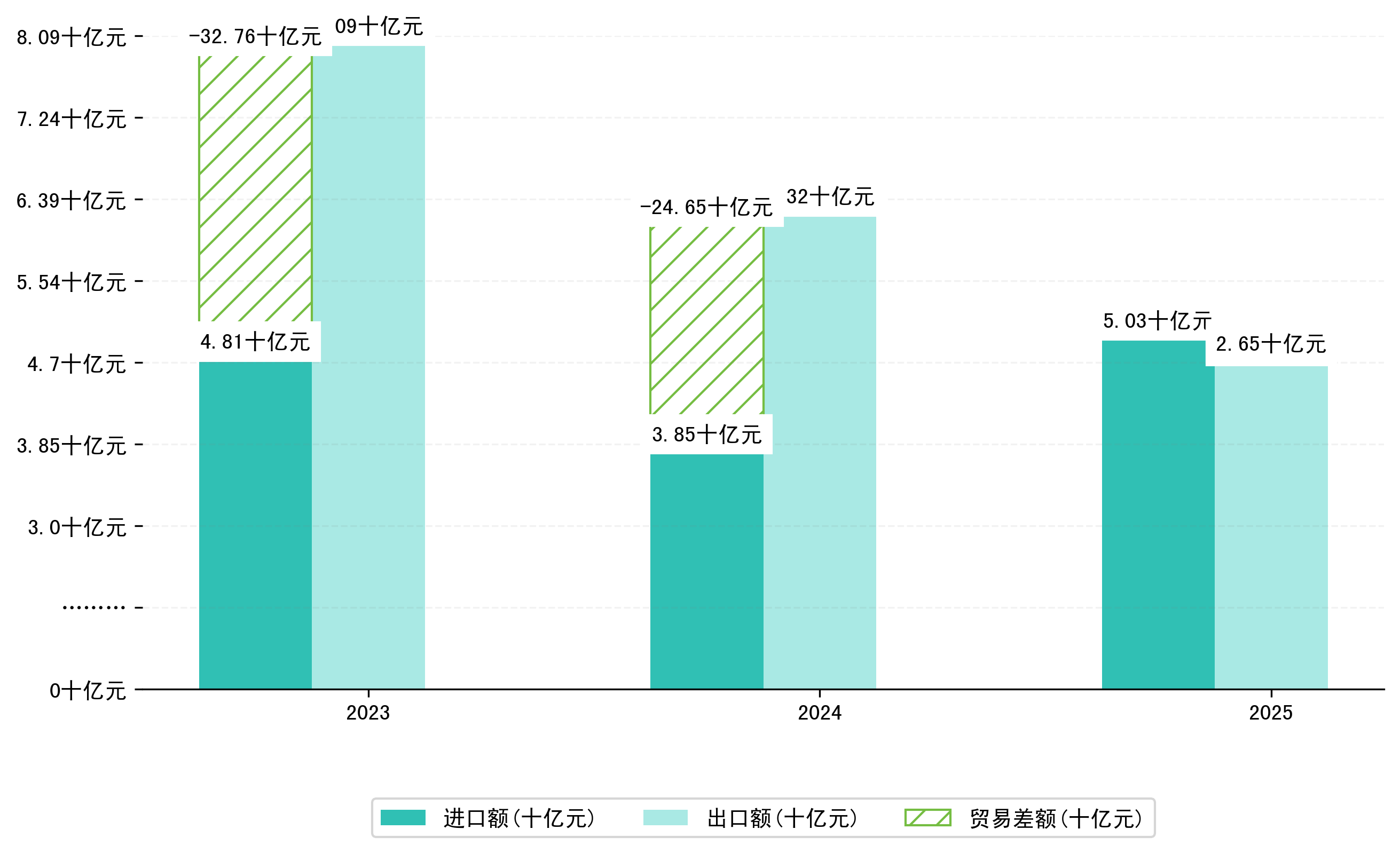 以美元计,2025年1-6月满洲里市贸易差额为3733,2520万美元(贸易逆差),相比上年同期减少了3,8397,1202万美元,同比减少-110.77%。
