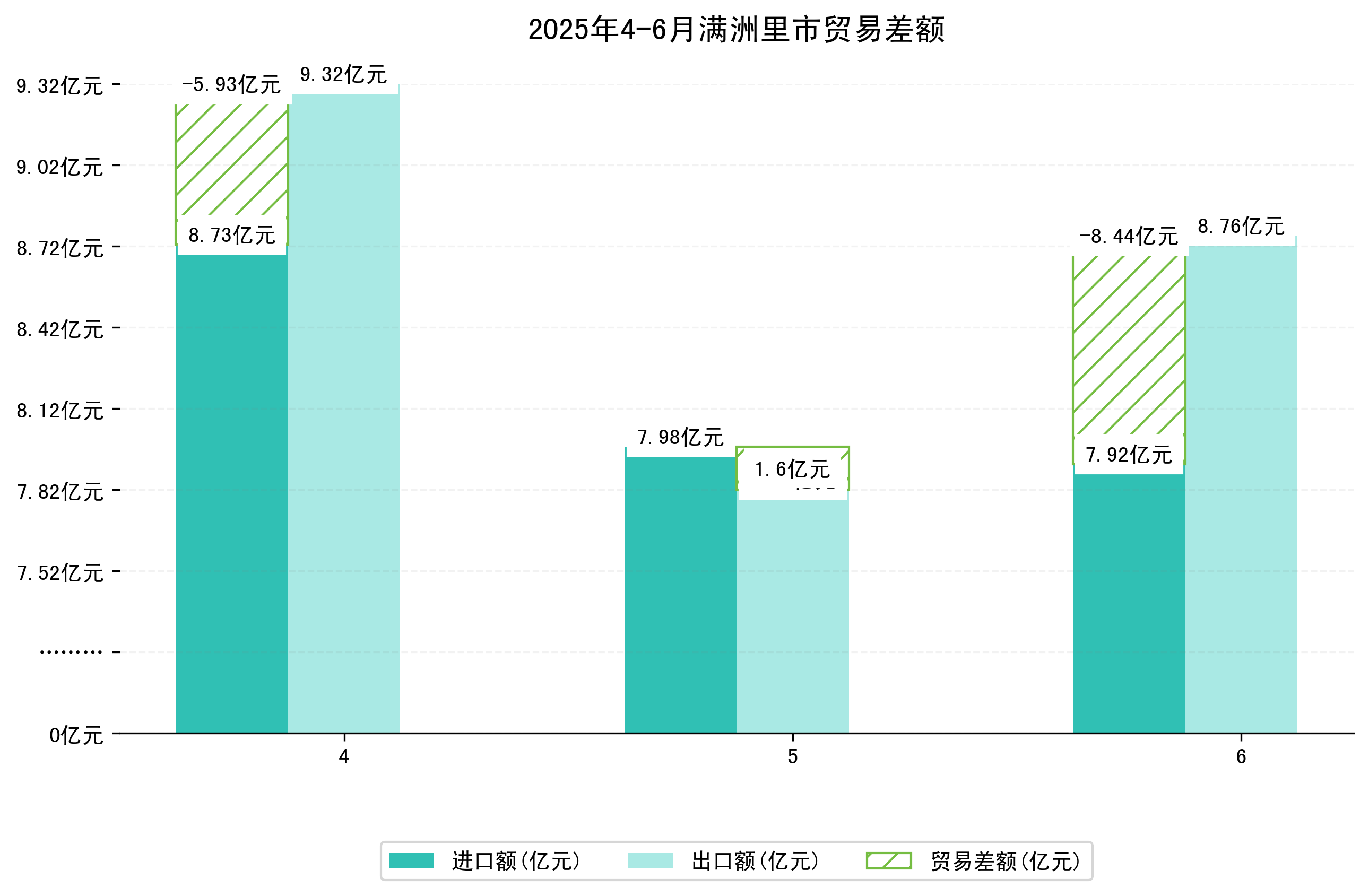 2025年6月满洲里市进出口总额及进出口差额统计分析