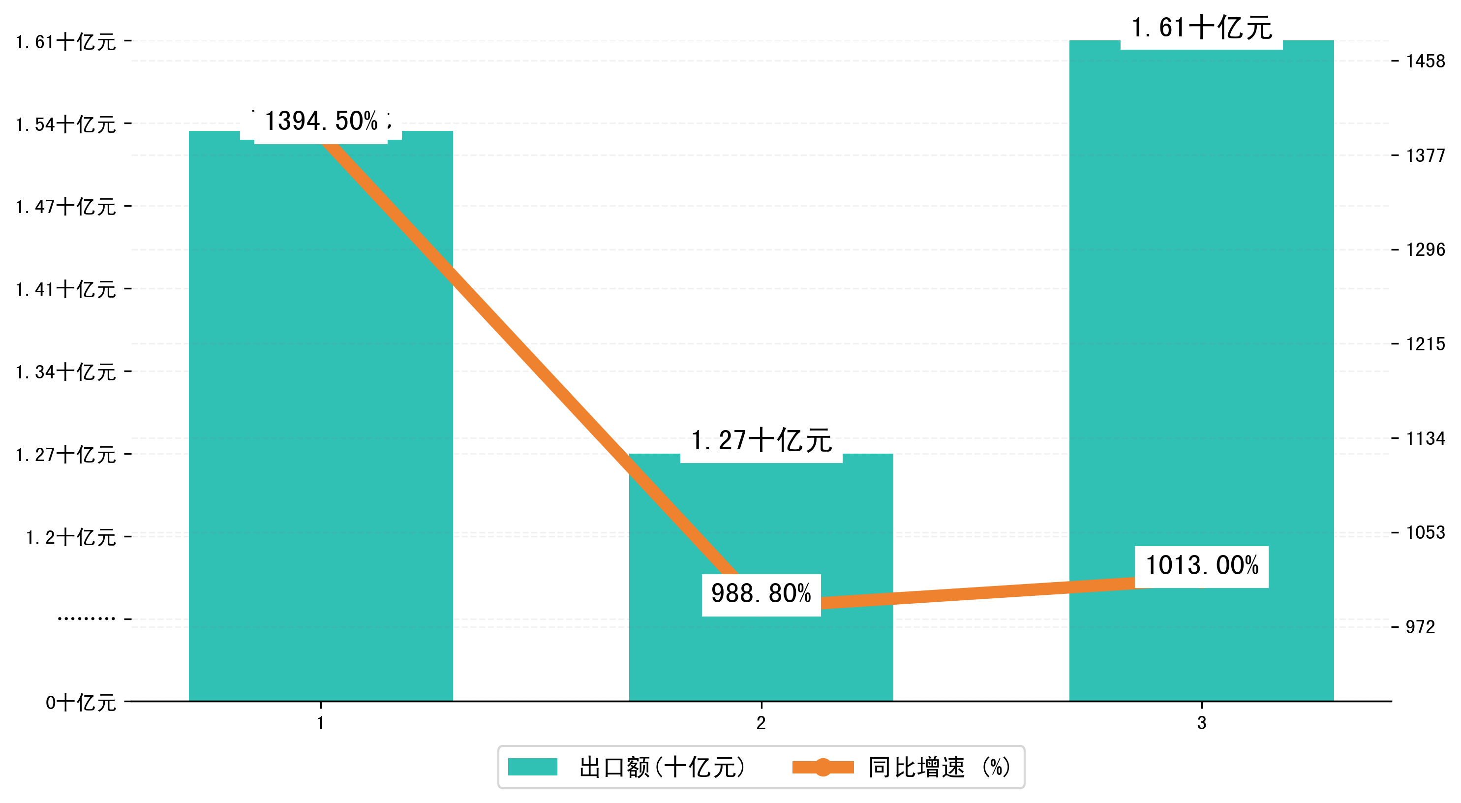 以美元计,2023年1-3月满洲里市出口额为6,4058.6777万美元,相比上年同期增加了5,7831.1283万美元,同比增加932.10%。