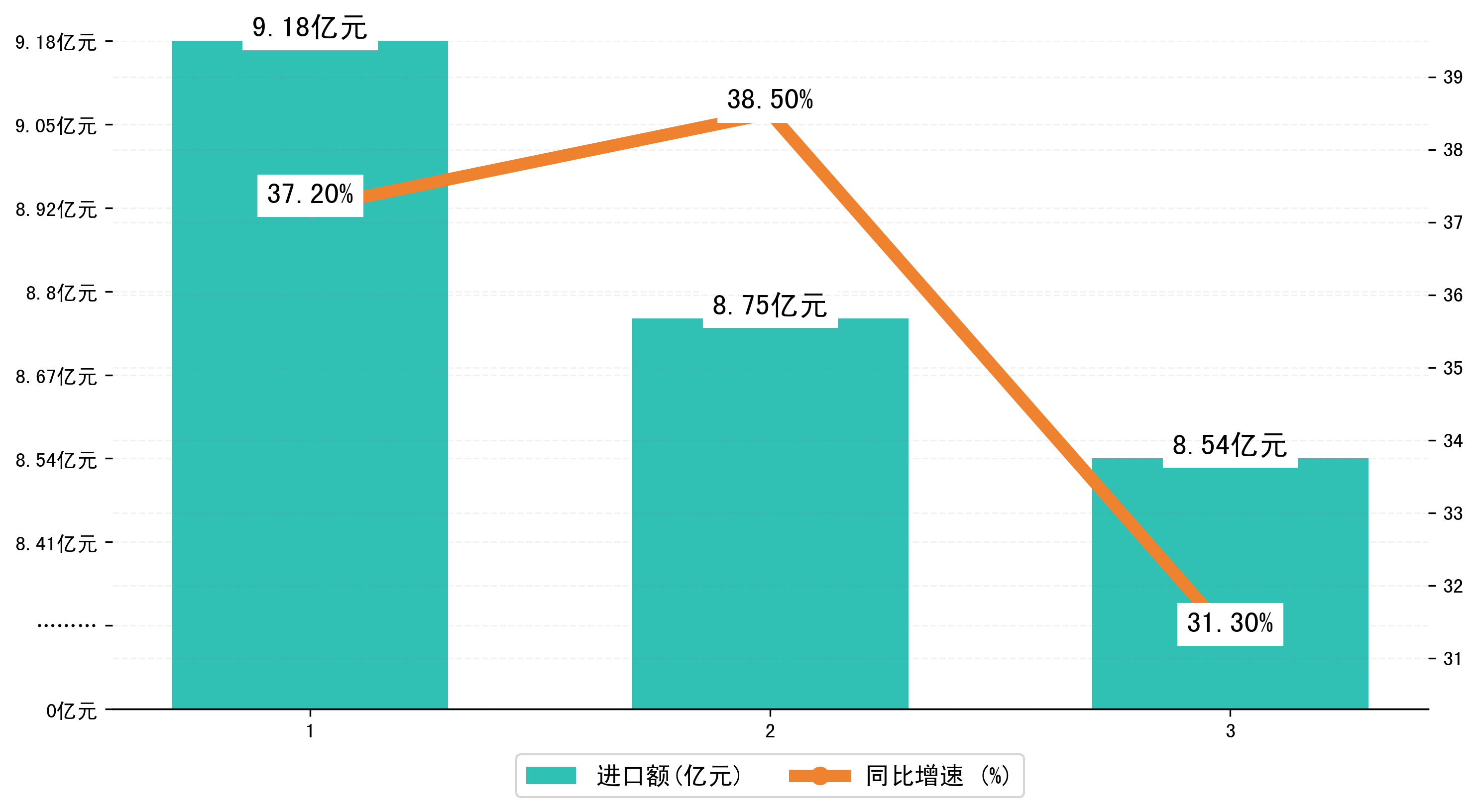 以美元计,2023年1-3月满洲里市进口额为3,8357.5617万美元,相比上年同期增加了7137.5043万美元,同比增加21.60%。