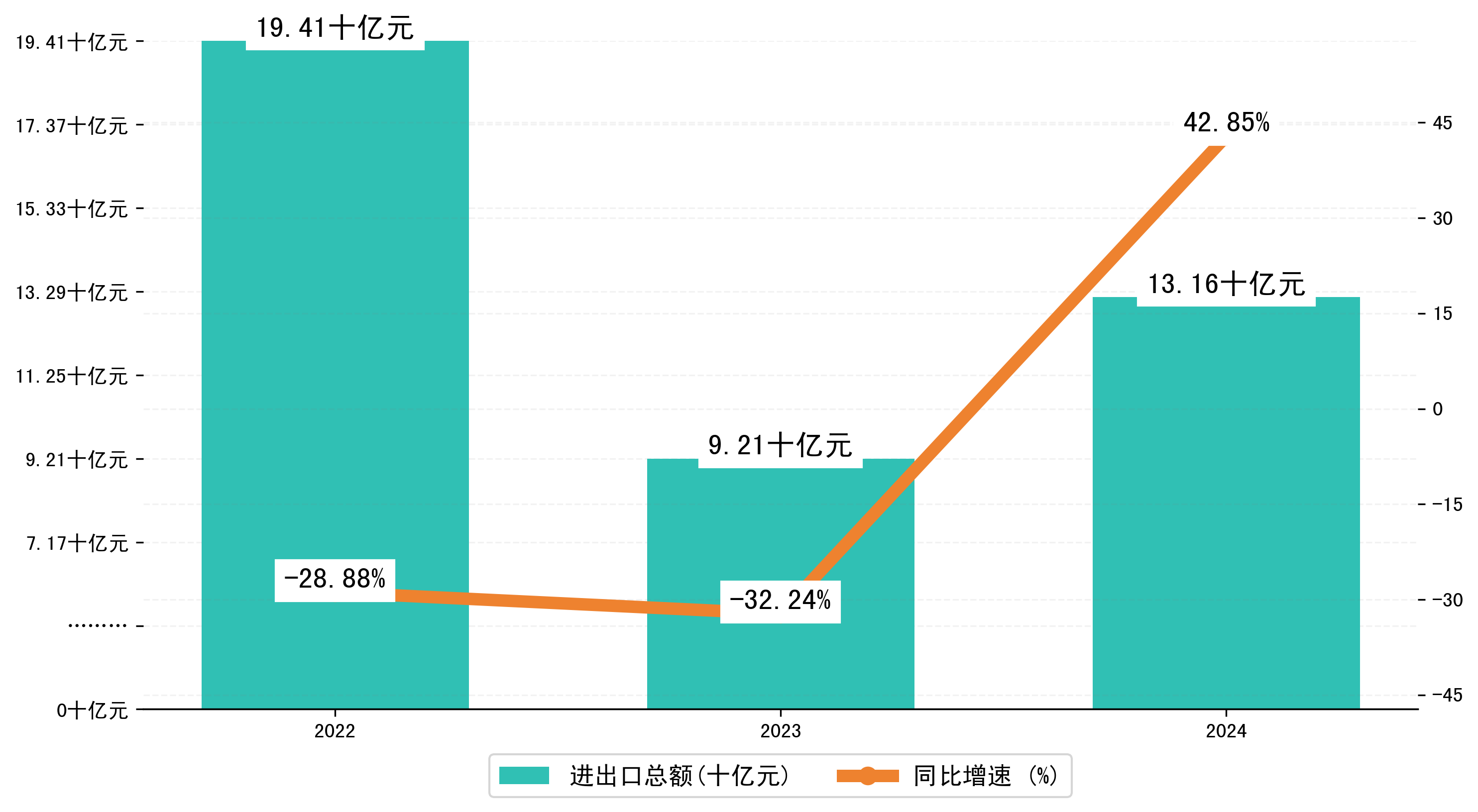 以美元计,2024年1-10月茂名市进出口总额为18,5081.4513万美元,相比上年同期增加了5,3596.1805万美元,同比增加40.80%。