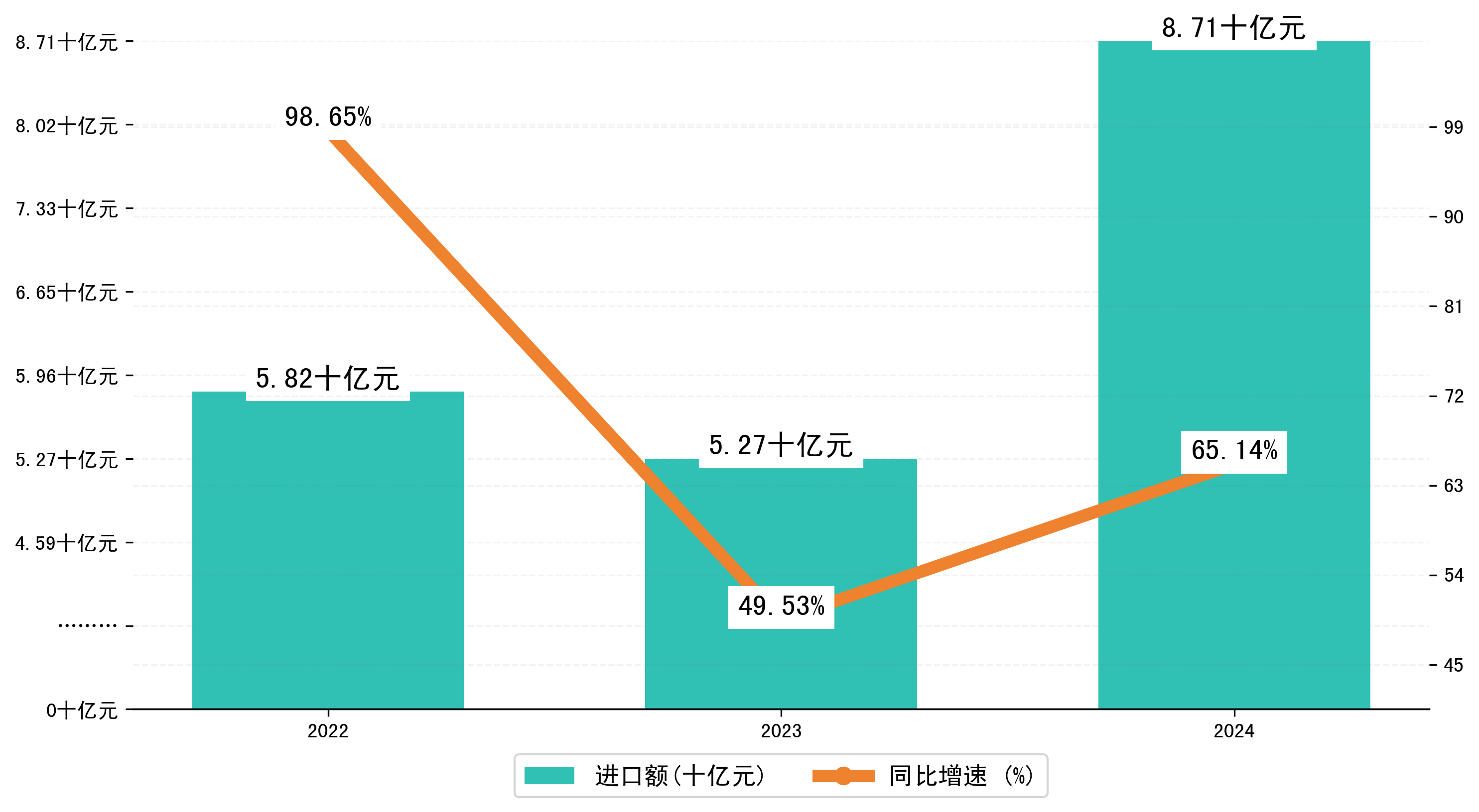 以人民币计,2024年1-10月茂名市进口额为87,0619.6163万元,相比上年同期增加了34,3403.3311万元,同比增加了65.10%。