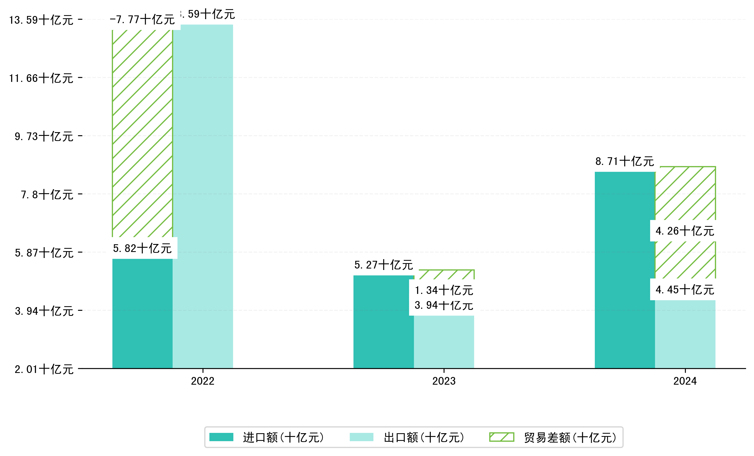 以美元计,2024年1-10月茂名市贸易差额为5,9968,0487万美元(贸易逆差),相比上年同期减少了4,1159,7483万美元,同比减少218.84%。