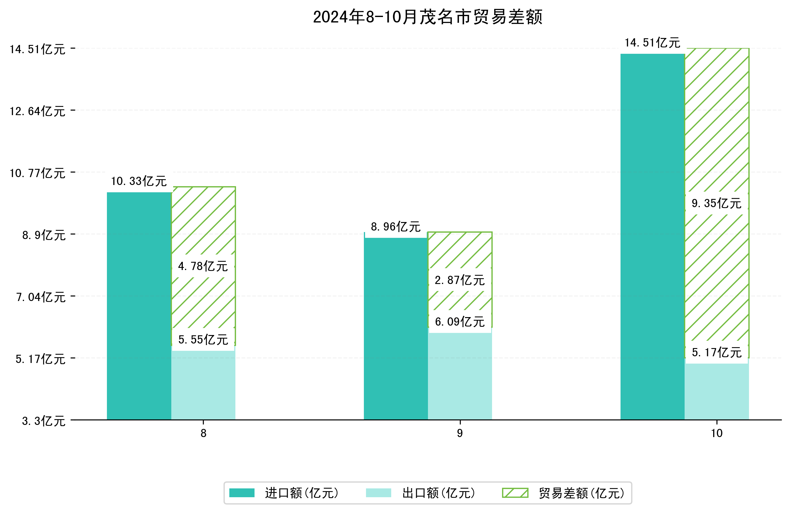2024年10月茂名市进出口总额及进出口差额统计分析