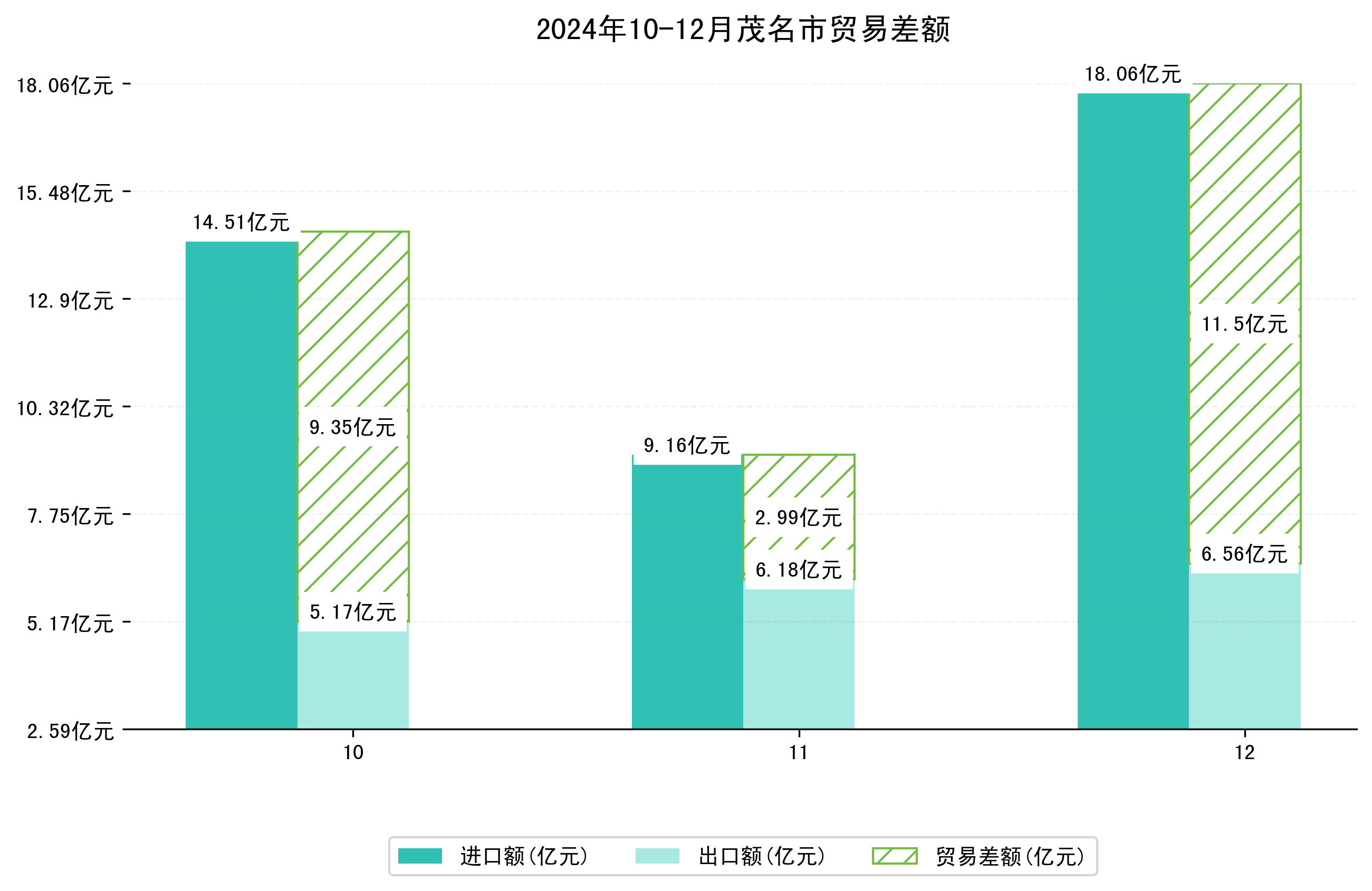 2024年12月茂名市进出口总额及进出口差额统计分析