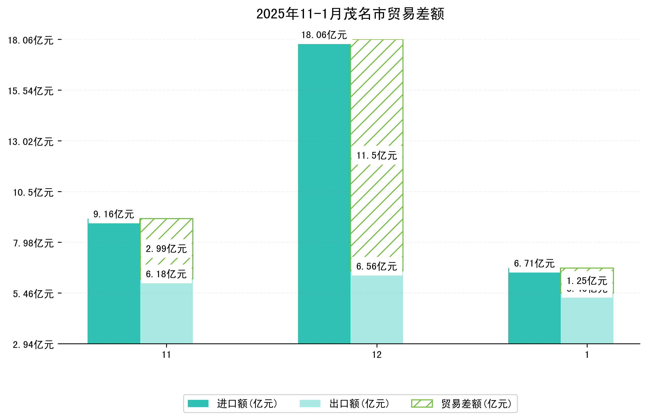 2025年1月茂名市进出口总额及进出口差额统计分析