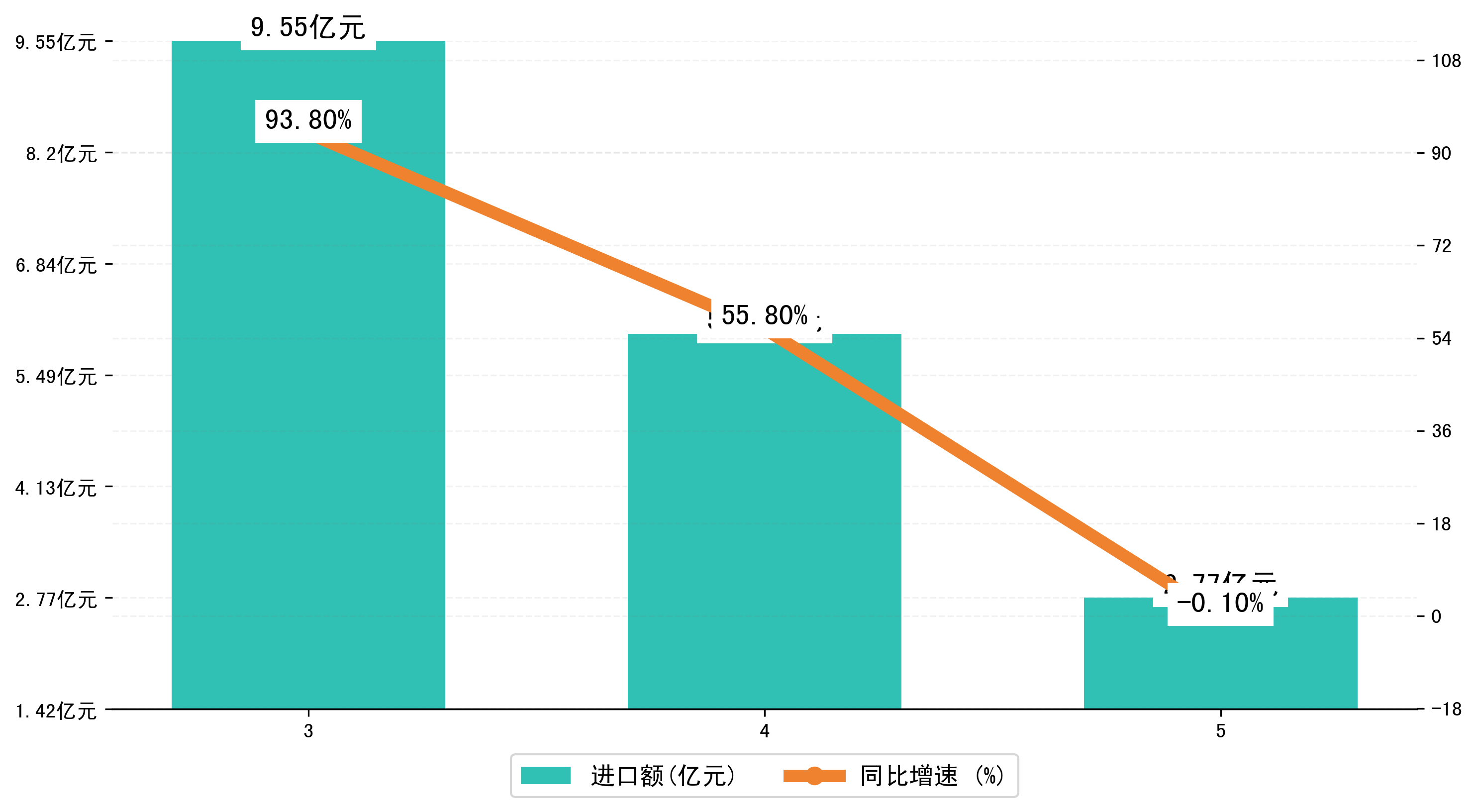 以人民币计,2025年5月茂名市进口额为2,7738.7662万元,相比上月减少了3,2139.0046万元;相比上年同期减少了10,9859.9414万元,同比减少了-0.10%。
