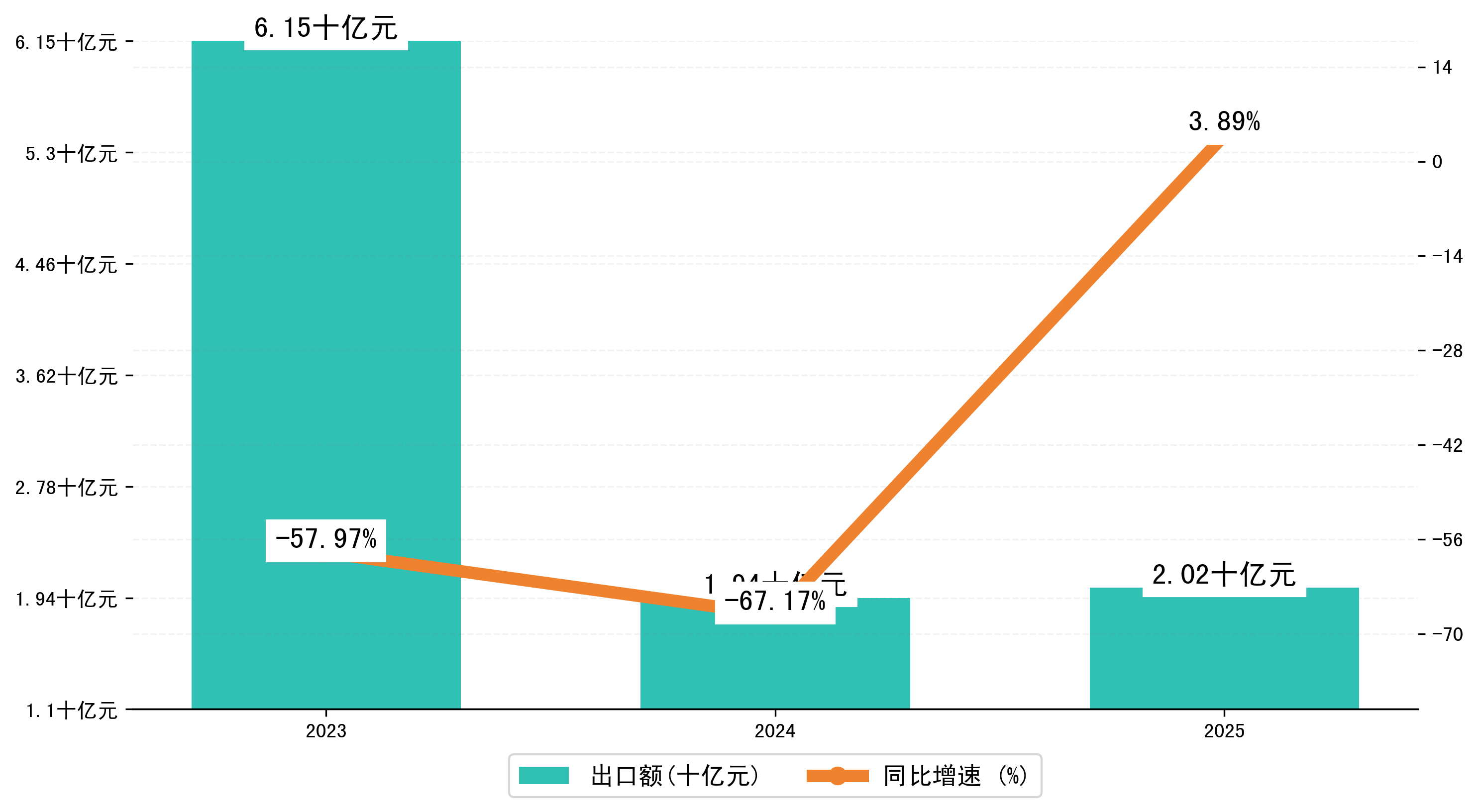 以美元计,2025年1-5月茂名市出口额为2,8083.9726万美元,相比上年同期增加了764.9203万美元,同比增加2.80%。