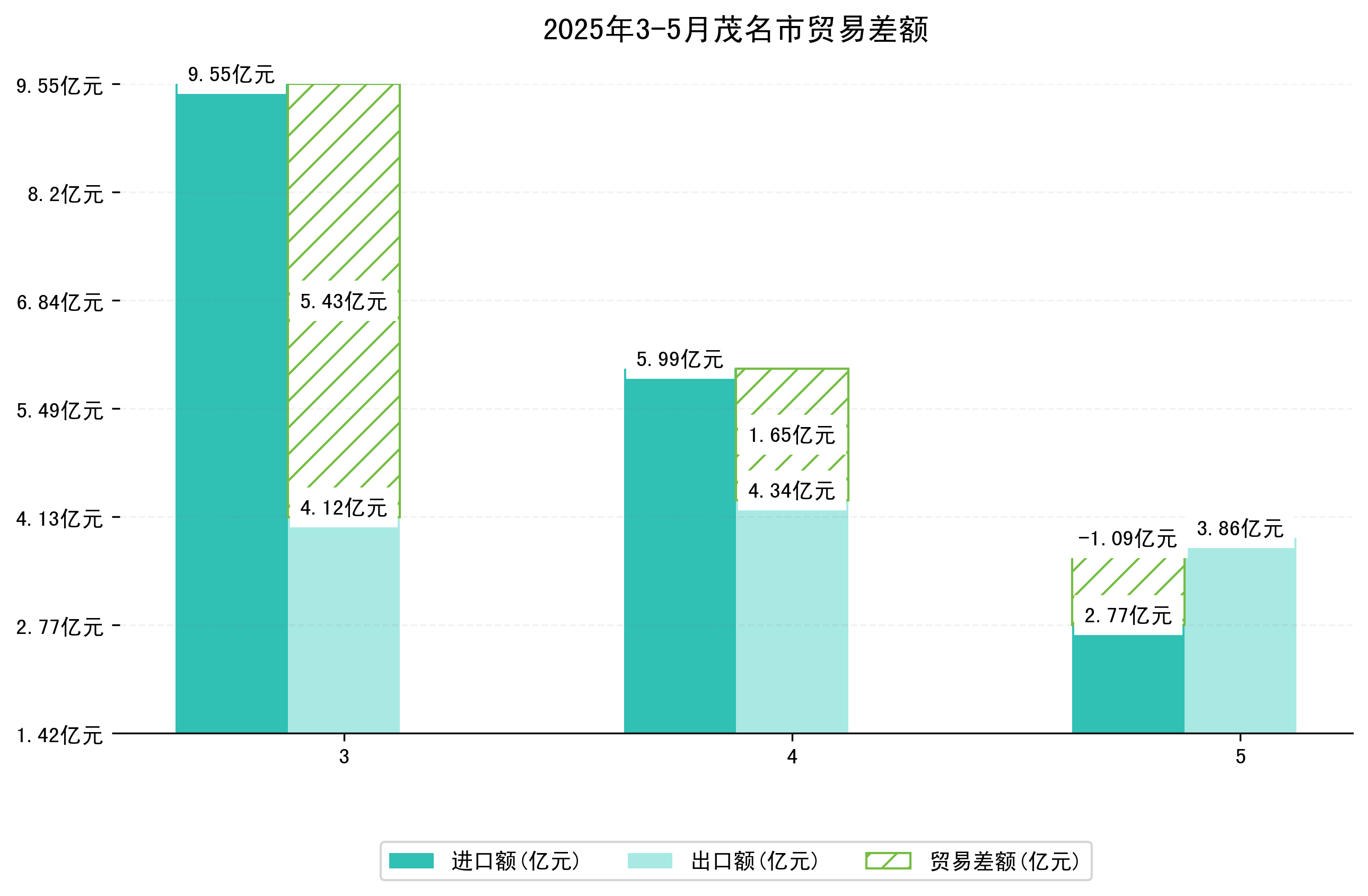 2025年5月茂名市进出口总额及进出口差额统计分析
