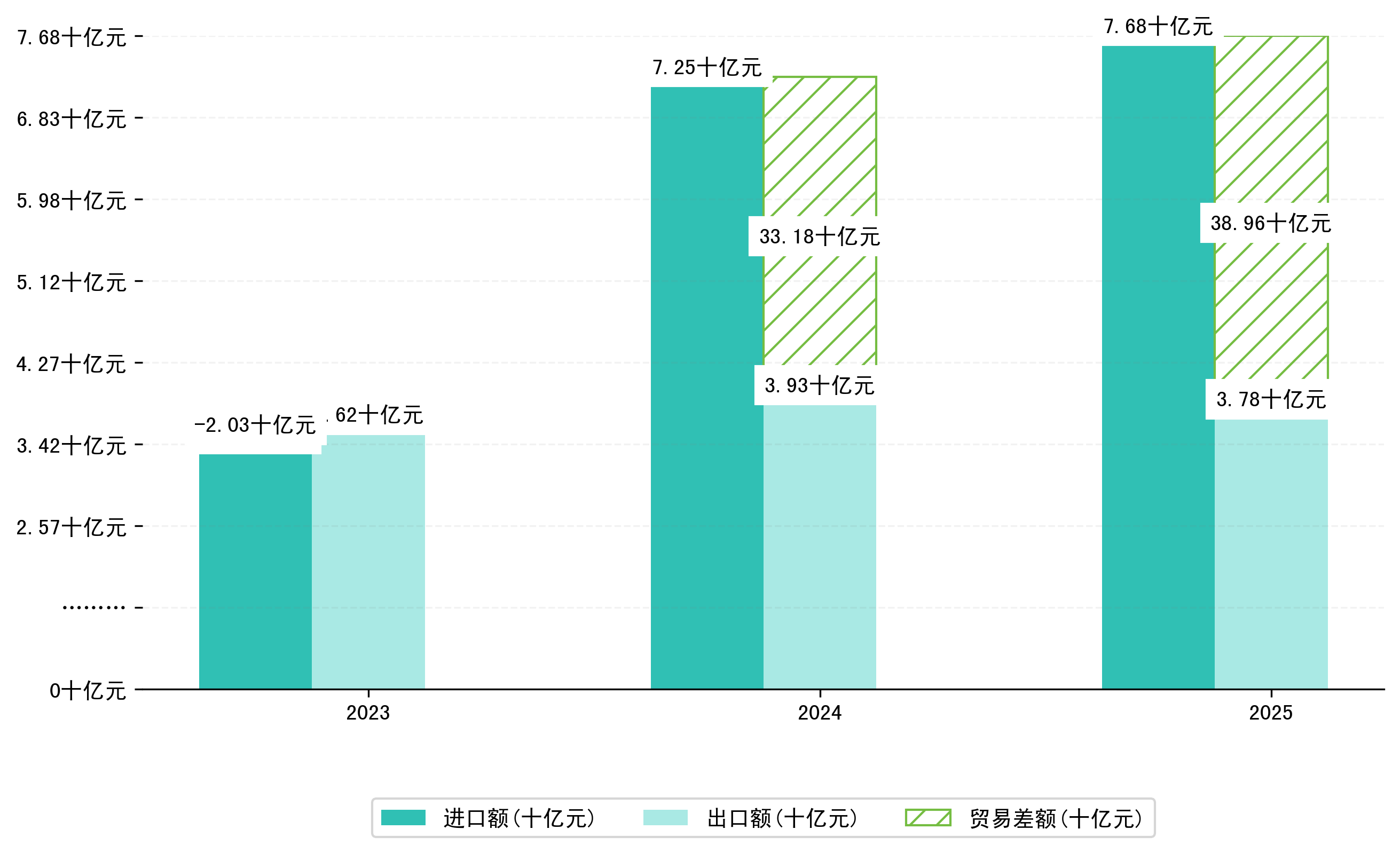 以人民币计,2025年9月茂名市贸易差额为6,9686,7072万元(贸易逆差),相比上月减少了2,6495,7041万元,即3720,7901万美元;相比上年同期减少了4,0983,2838万元,同比减少142.78%。