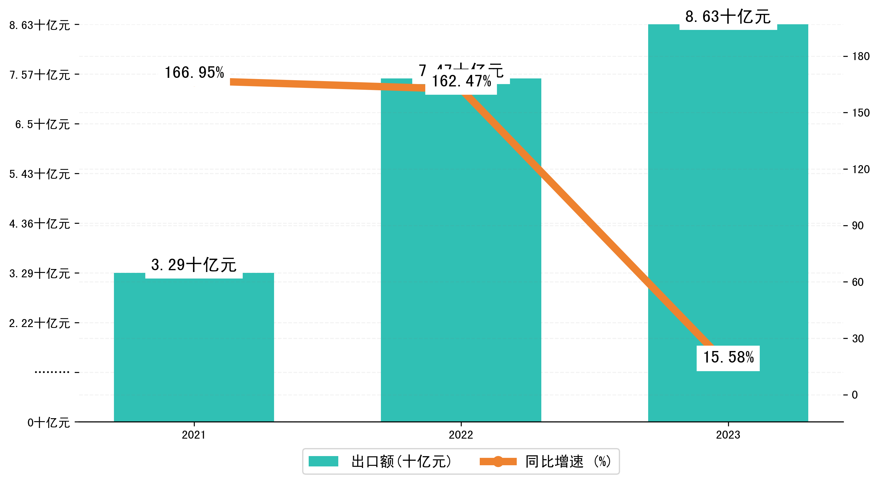 以人民币计,2023年1-5月绵阳市出口额为86,3447.0979万元,相比上年同期增加了11,6403.6484万元,同比增加了15.60%。