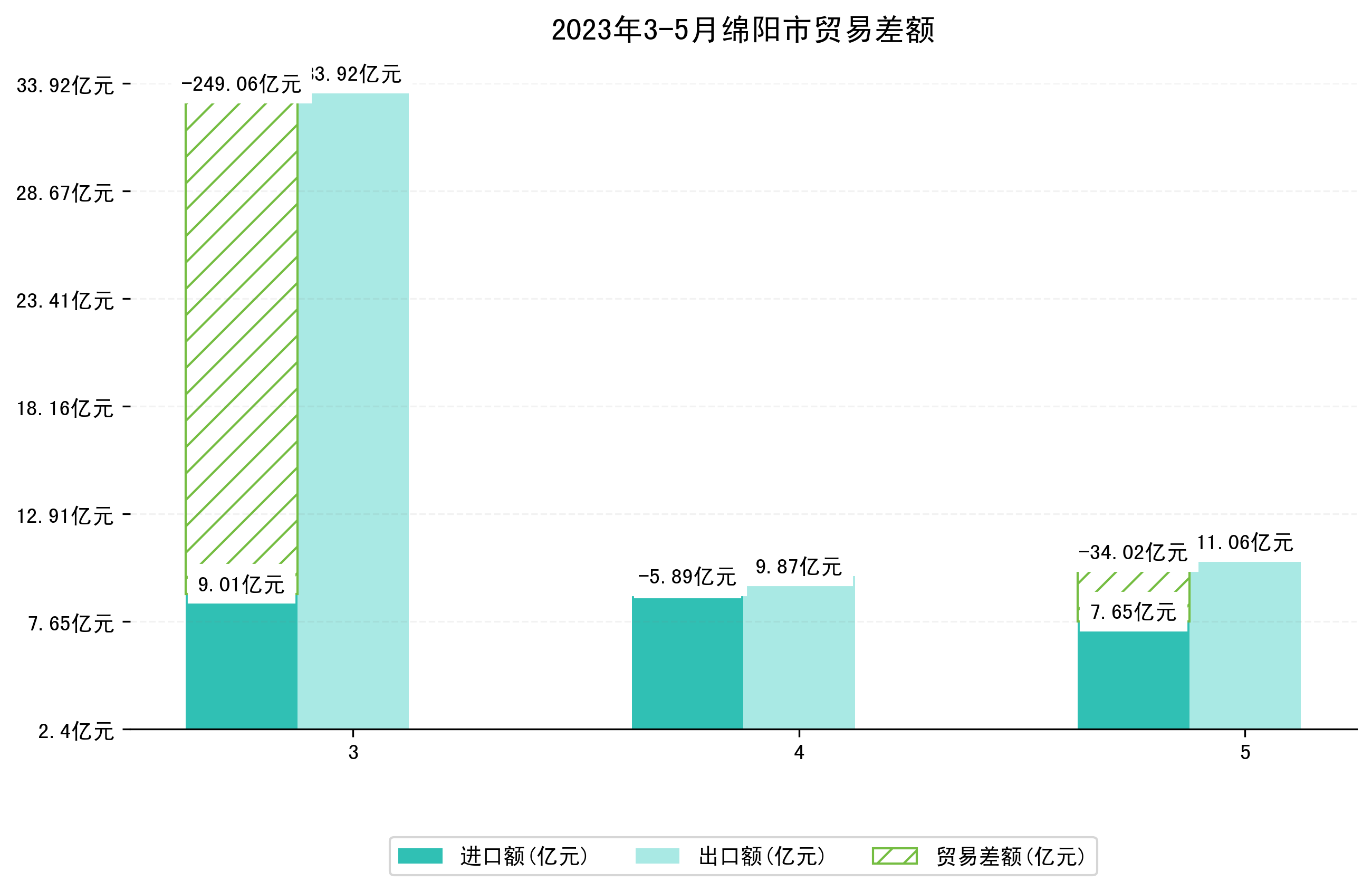 (图四:2023年3-5月绵阳市贸易差额)