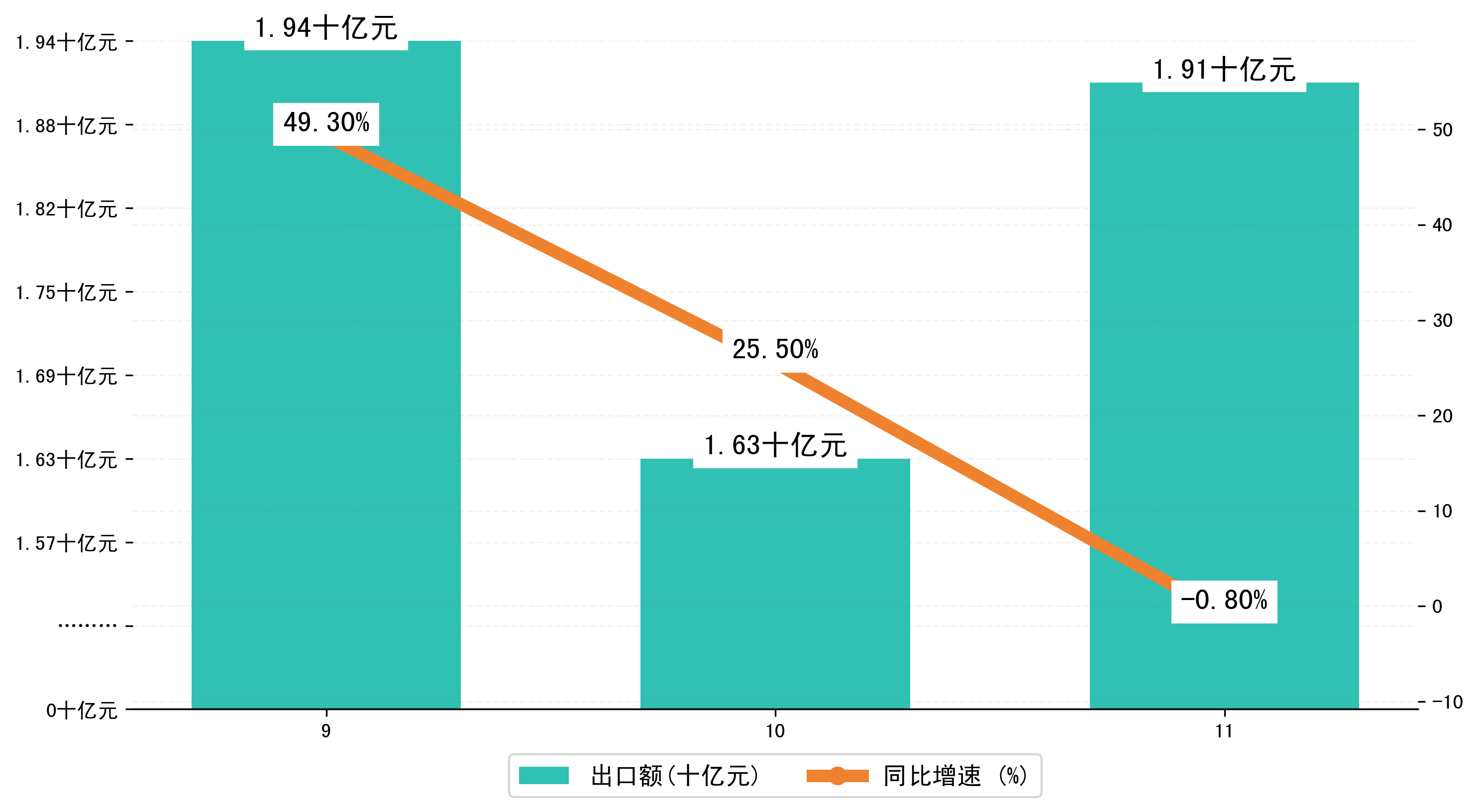 (图二:2024年9-11月绵阳市出口额)
