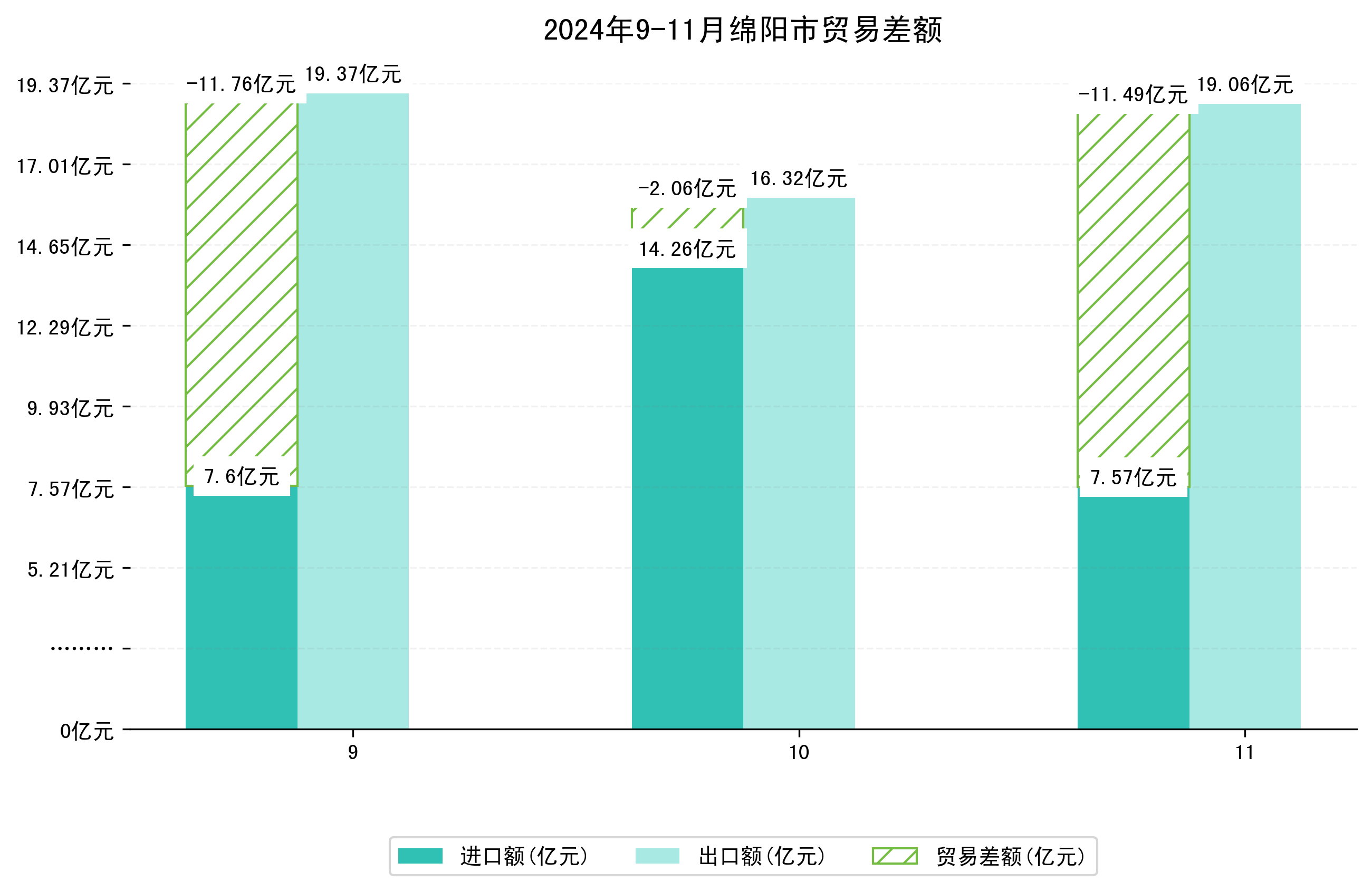 (图四:2024年9-11月绵阳市贸易差额)