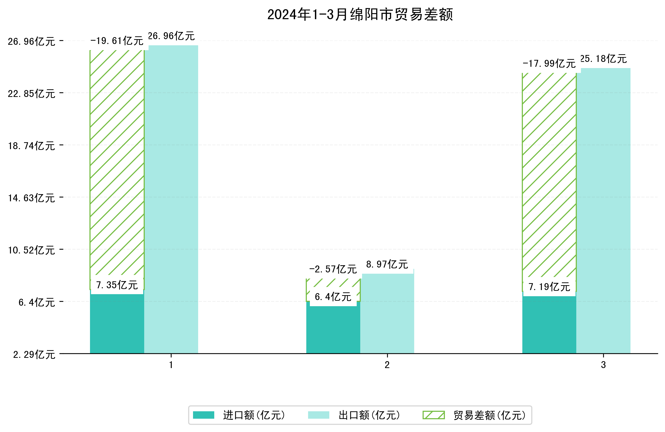 (图一:2024年1-3月绵阳市进出口总额)