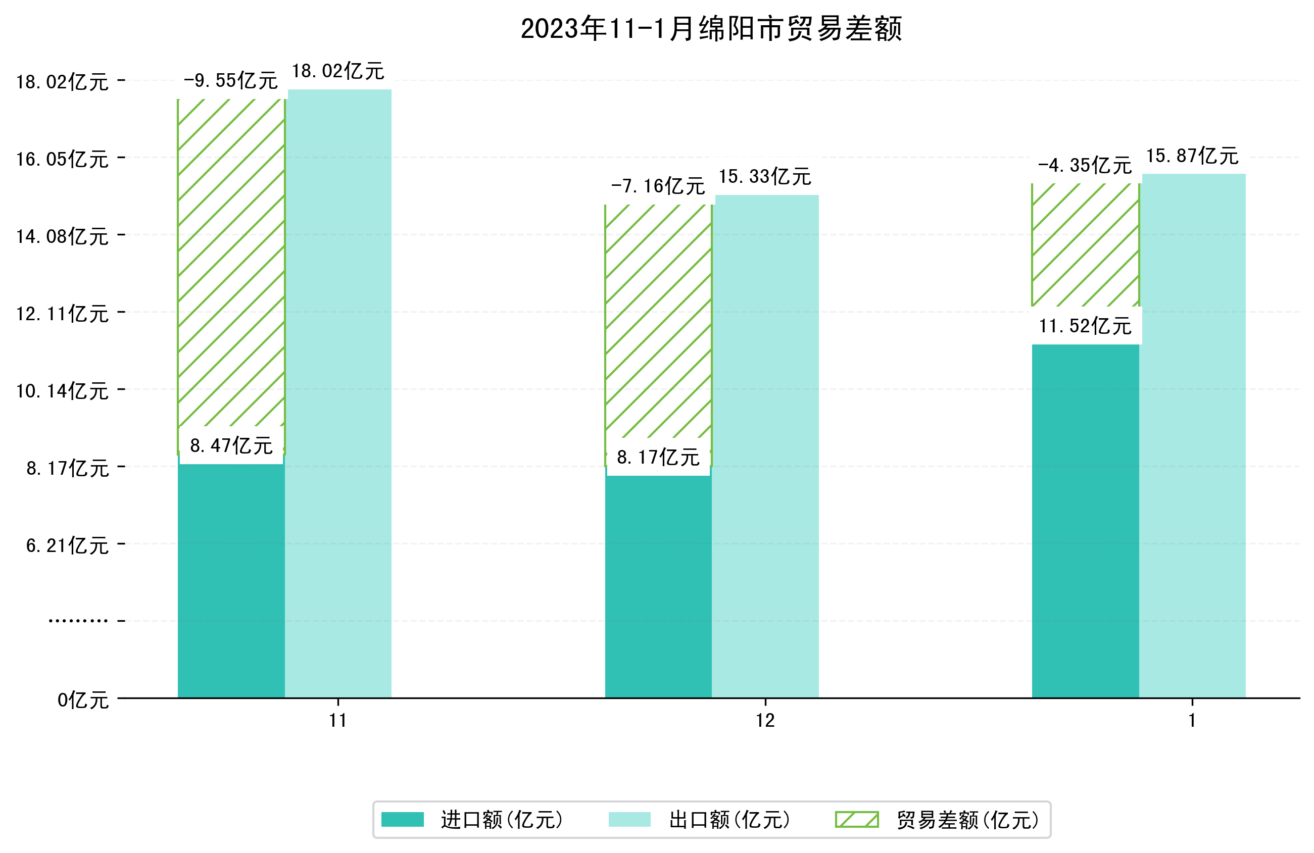 (图四:2023年11-1月绵阳市贸易差额)