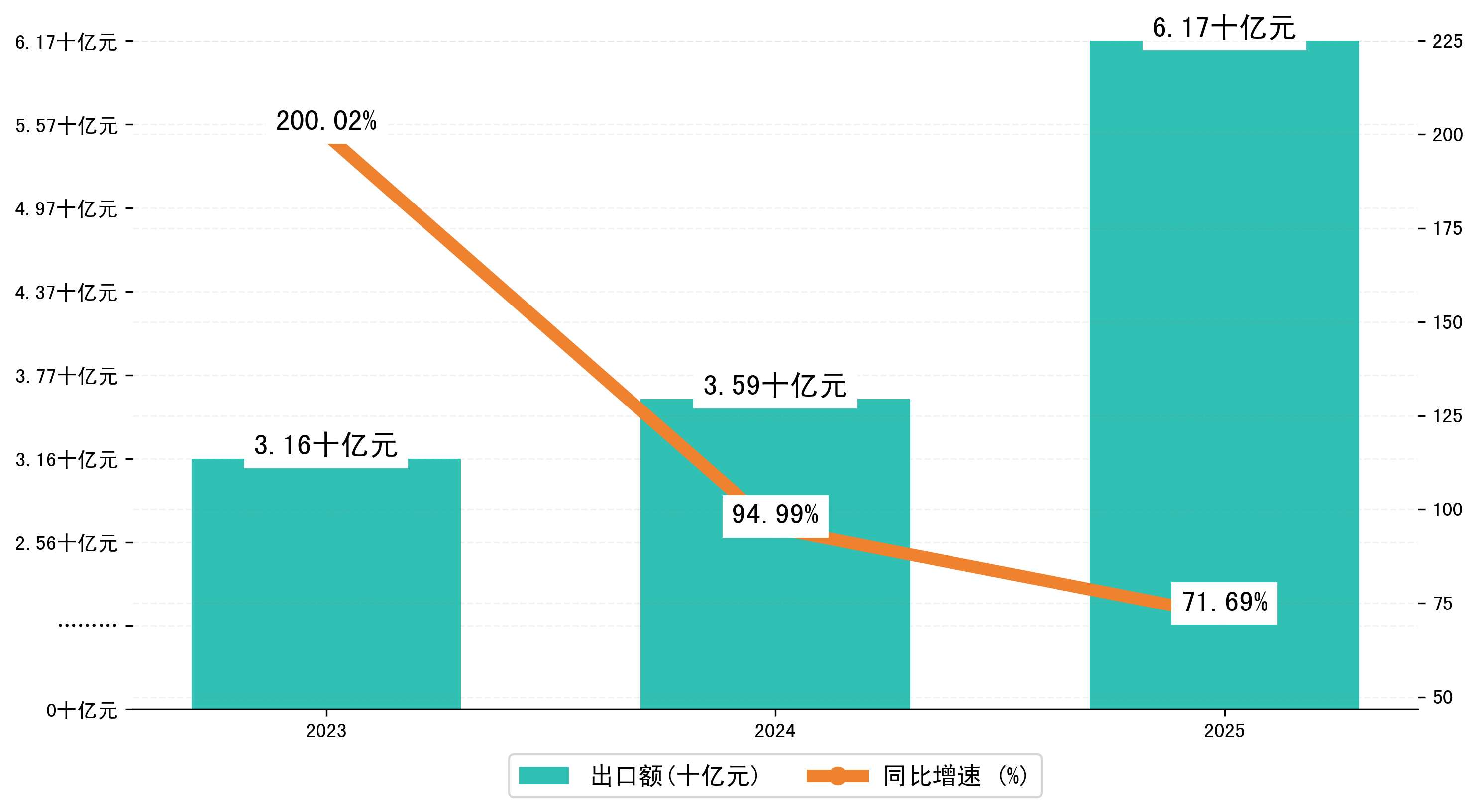 (图六:2023-2025年1-2月绵阳市累计出口额)