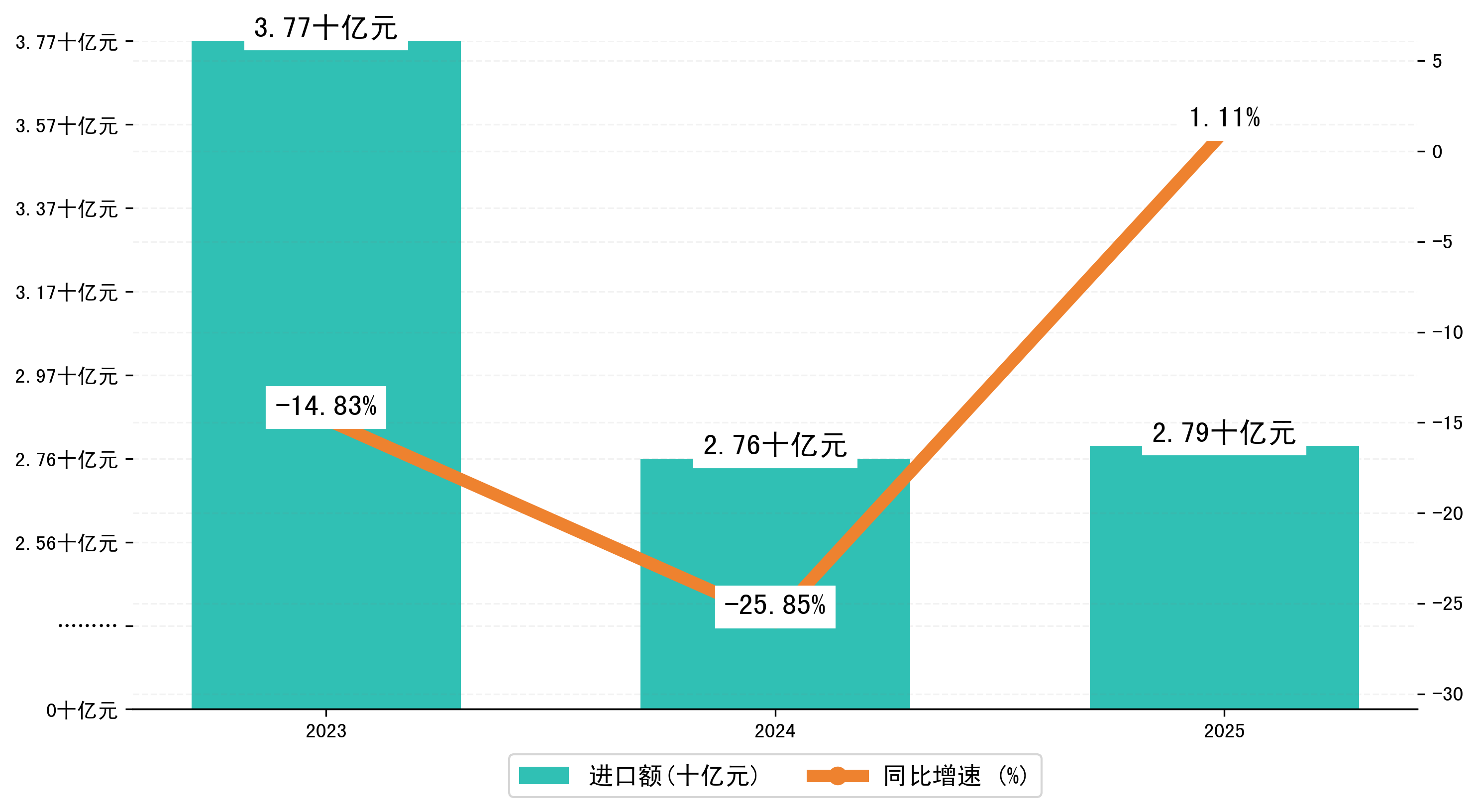 以美元计,2025年1-4月绵阳市进口额为3,8943.3065万美元,相比上年同期增加了77.6106万美元,同比增加0.20%。