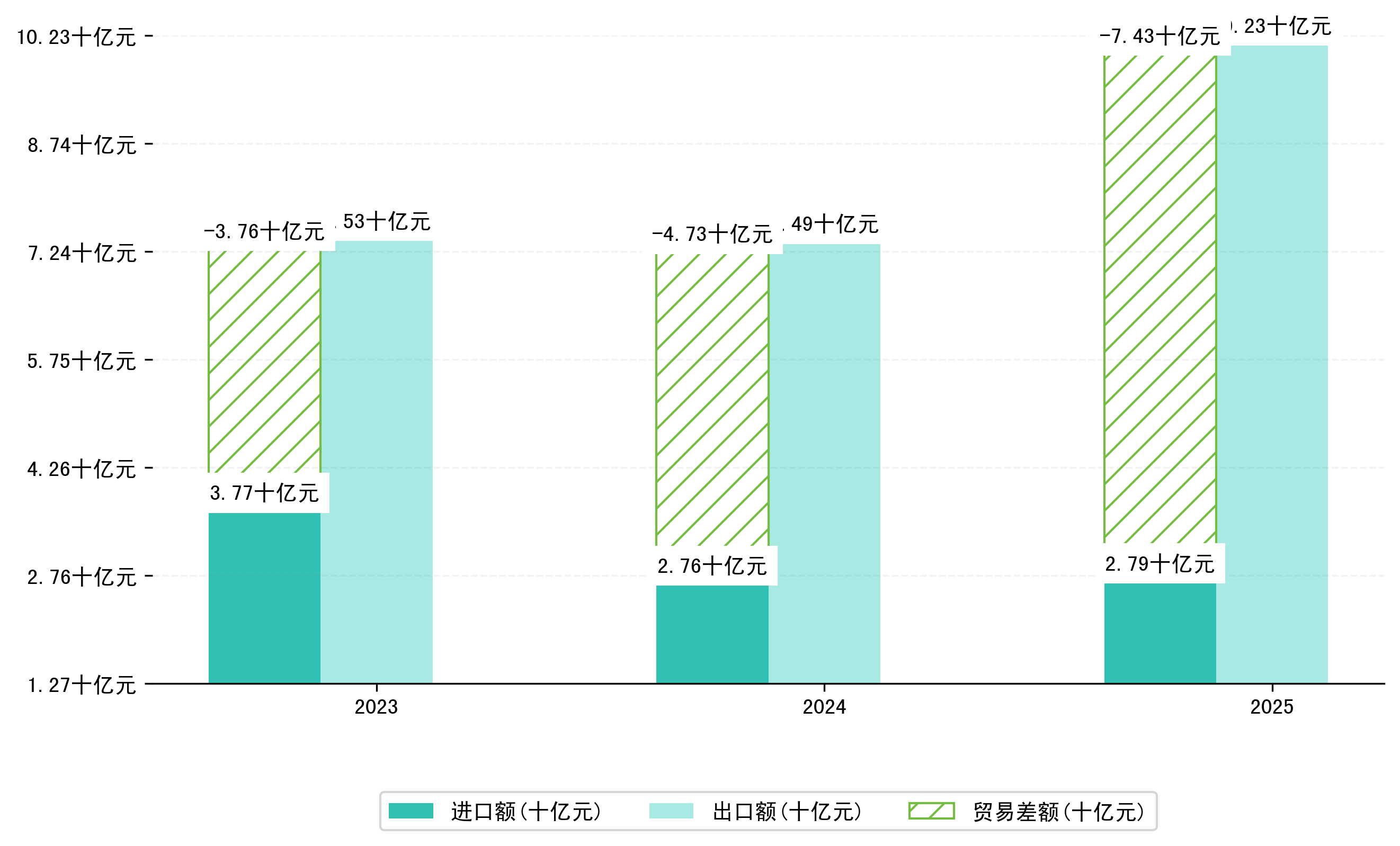 以人民币计,2025年4月绵阳市贸易差额为8,3811,6235万元(贸易顺差),相比上月减少了8,0841,7873万元,即1,1262,2867万美元;相比上年同期增加了1,2568,8859万元,同比增加17.64%。