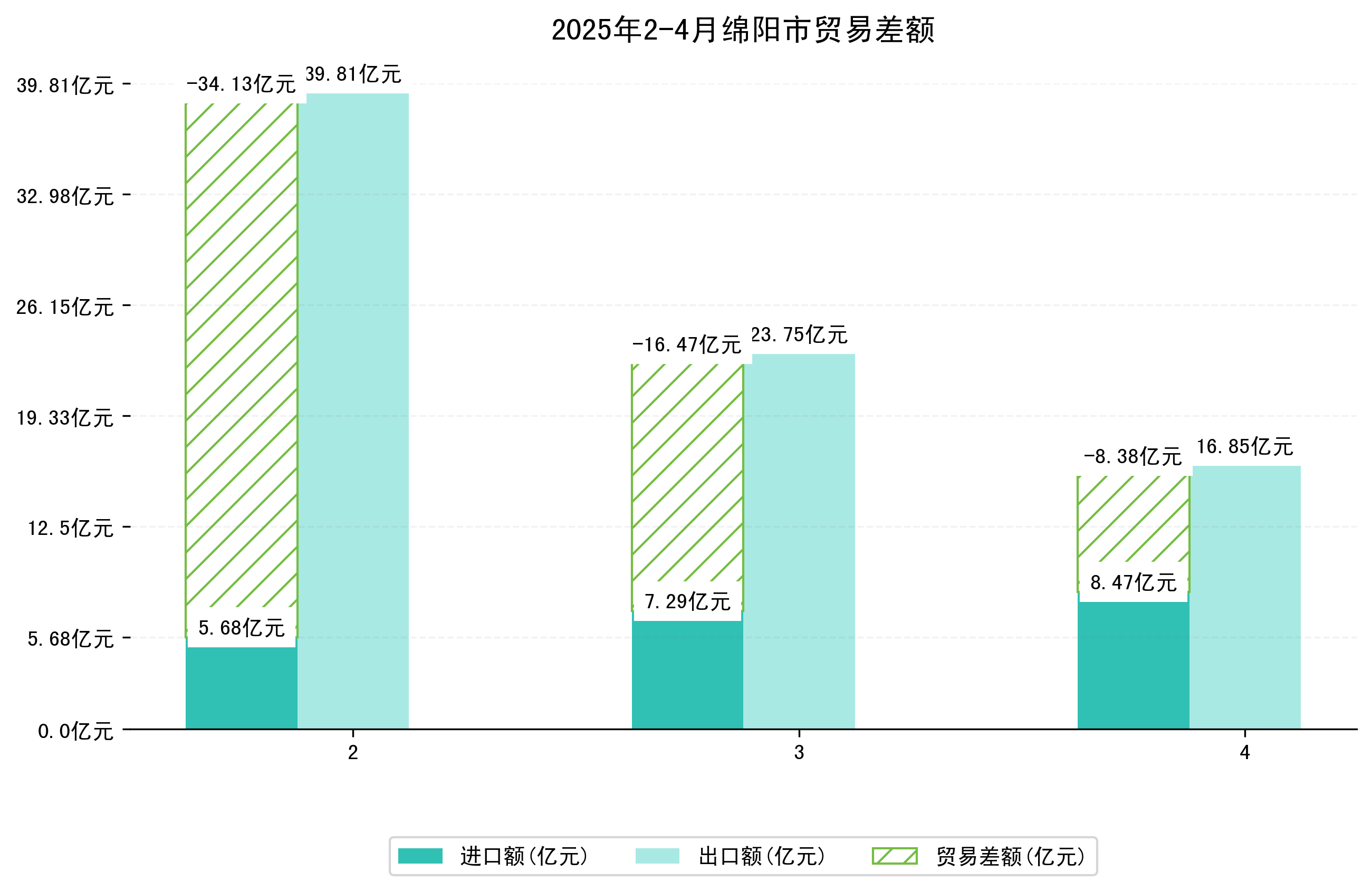 2025年4月绵阳市进出口总额及进出口差额统计分析