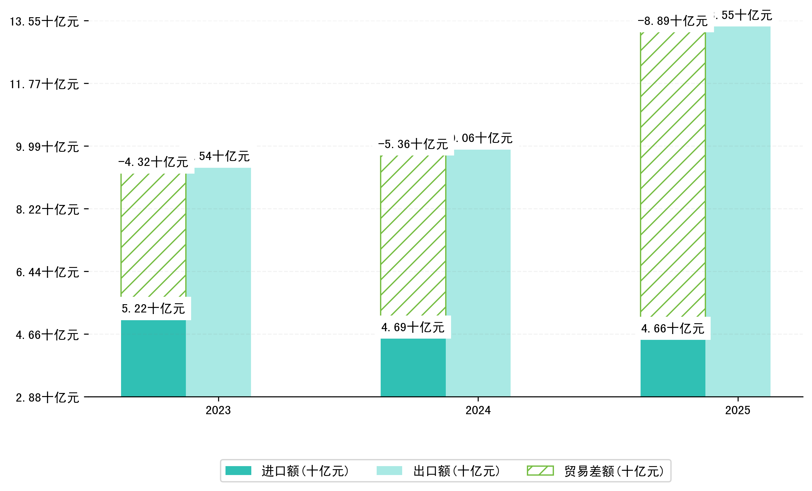 以人民币计,2025年1-6月绵阳市贸易差额为88,9139,5604万元(贸易顺差),相比上年同期增加了35,2708,3928万元,同比增加65.75%。