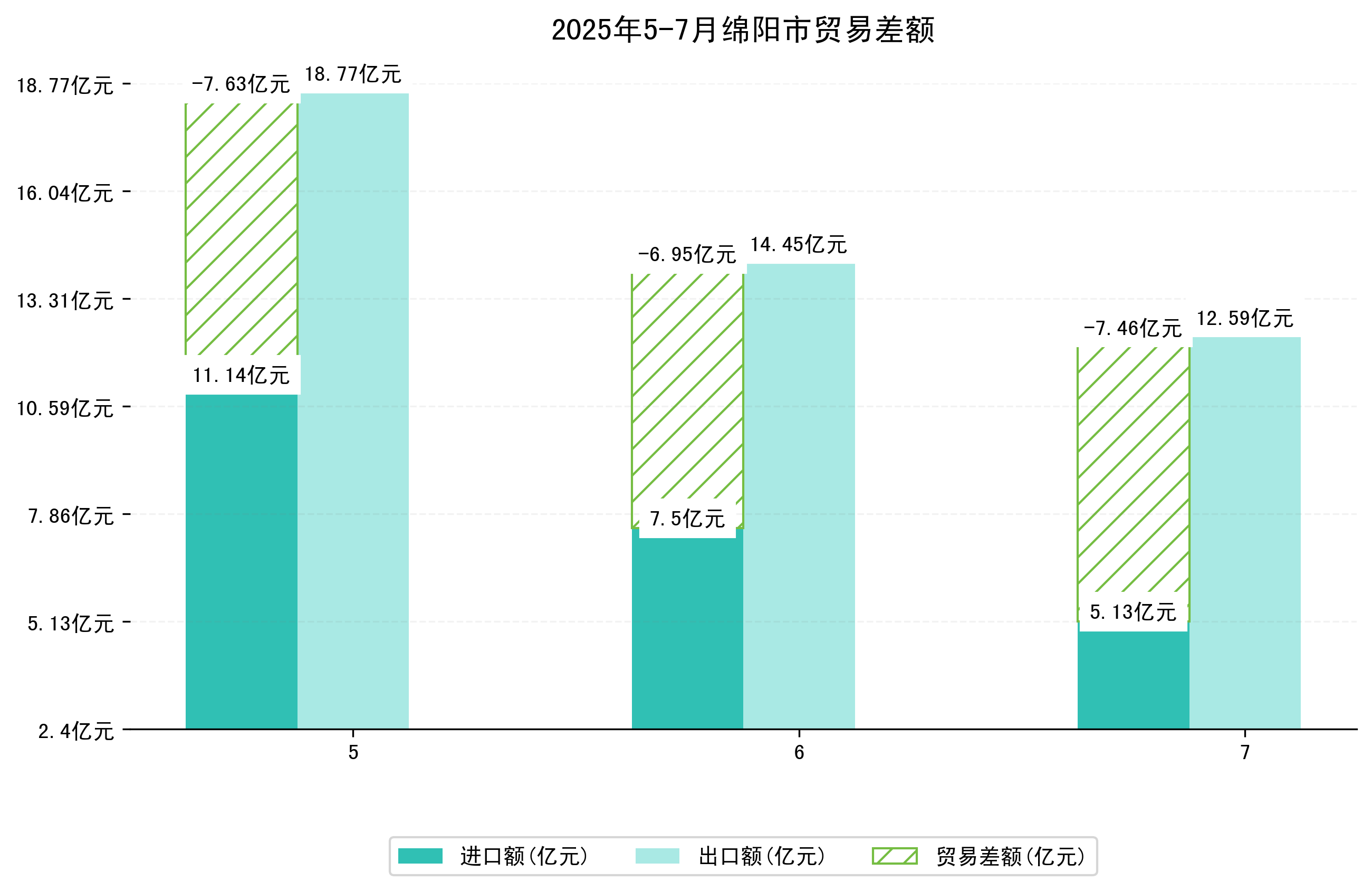2025年7月绵阳市进出口总额及进出口差额统计分析