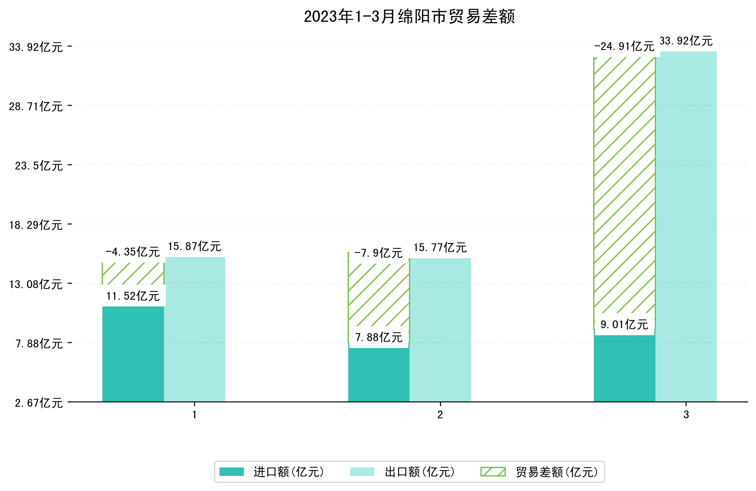 (图一:2023年1-3月绵阳市进出口总额)