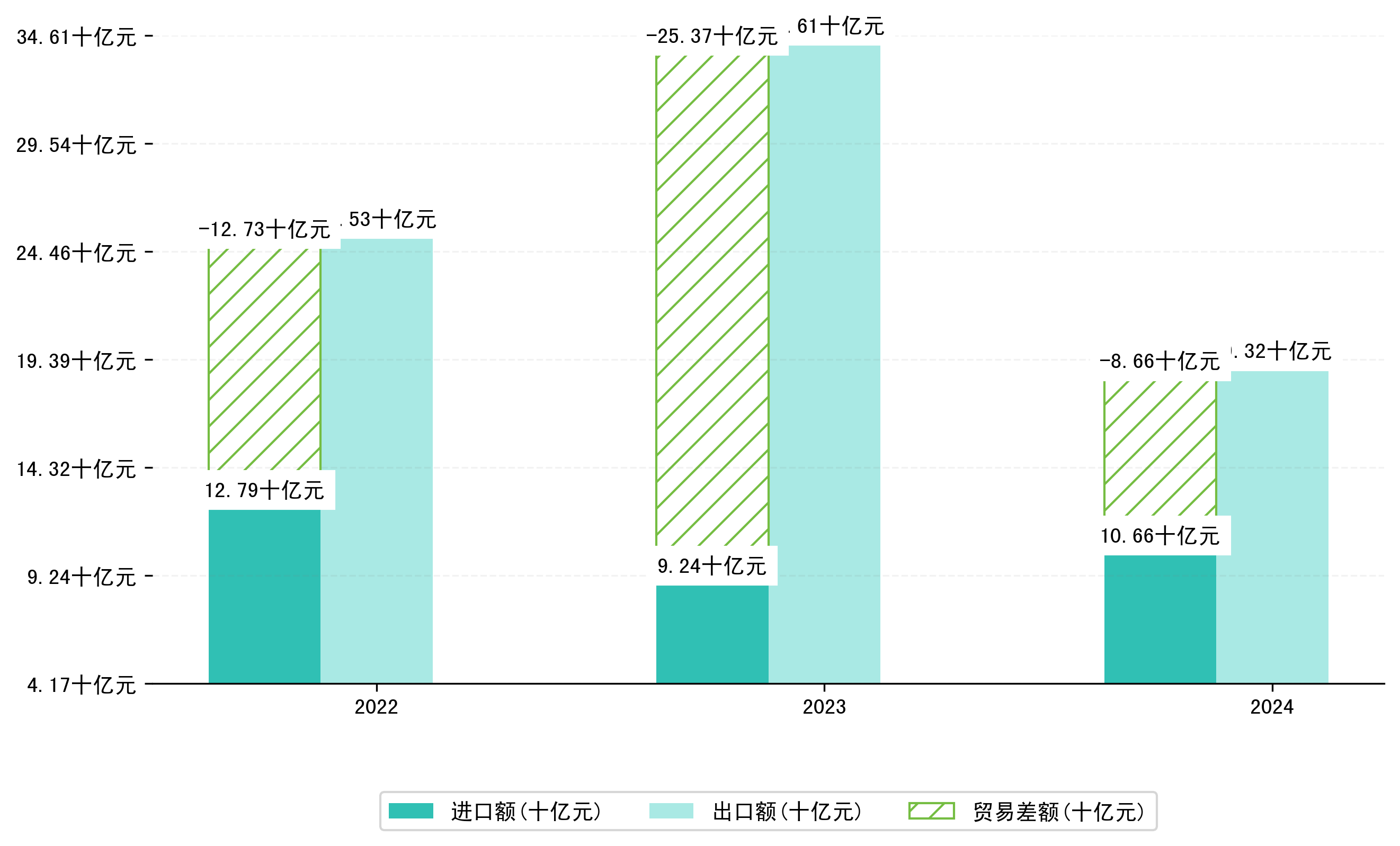 以人民币计,2024年1-4月南昌市贸易差额为86,6245,0370万元(贸易顺差),相比上年同期减少了167,0417,3971万元,同比减少-65.85%。