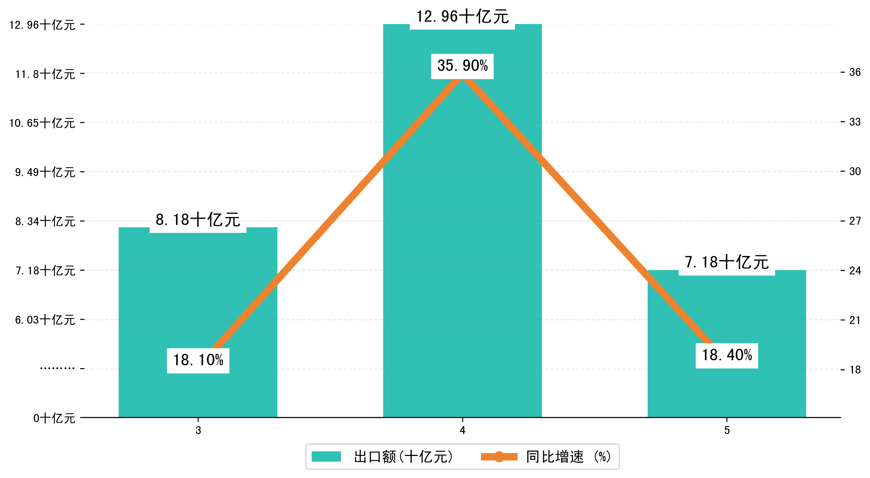 以人民币计,2023年1-5月南昌市出口额为417,8930.9865万元,相比上年同期增加了64,5801.0445万元,同比增加了18.40%。