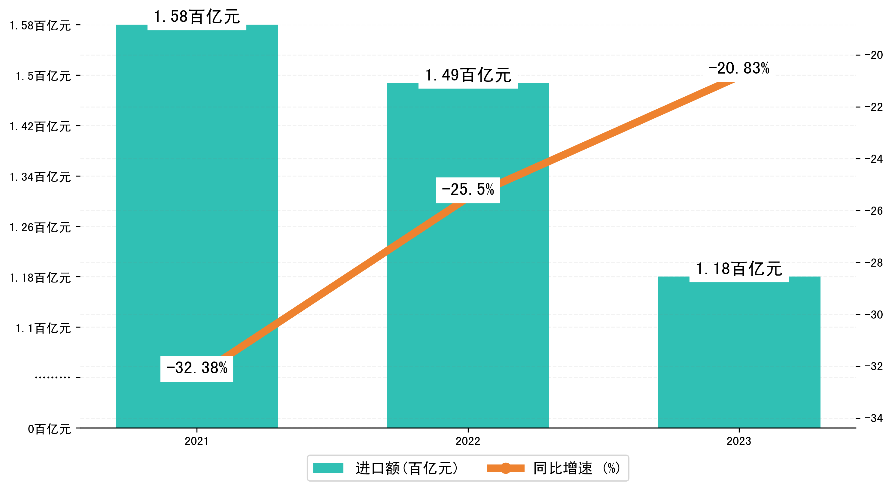 以人民币计,2023年1-5月南昌市进口额为117,9580.1967万元,相比上年同期减少了31,0441.4549万元,同比减少了-20.80%。
