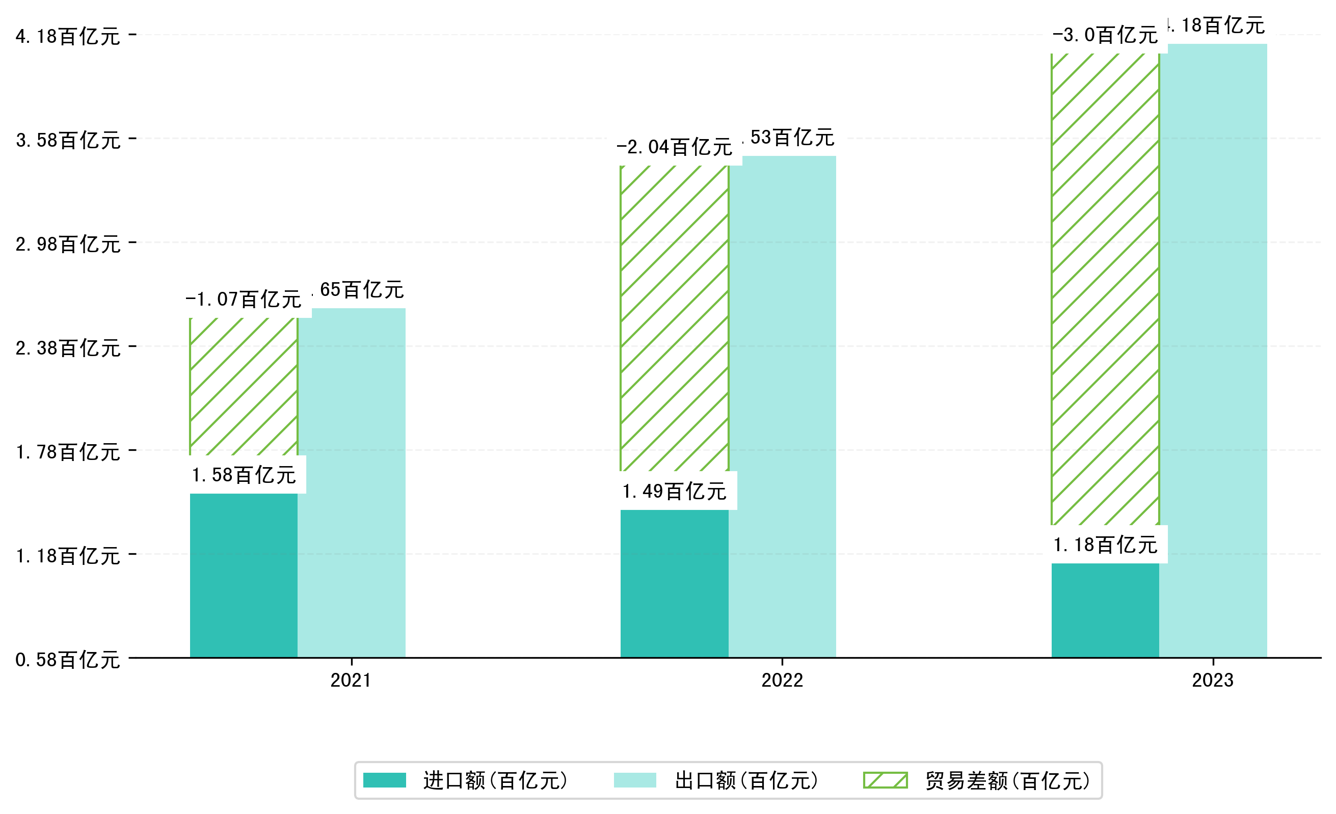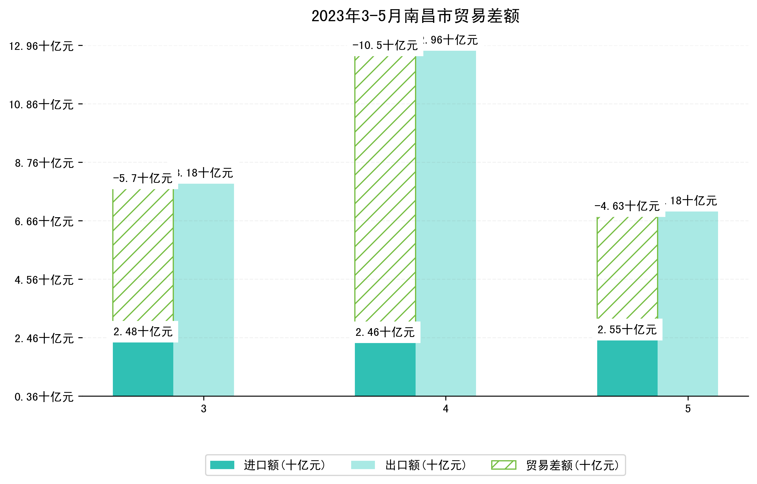 以人民币计,2023年1-5月南昌市贸易差额为299,9350,7898万元(贸易顺差),相比上年同期增加了95,6242,4994万元,同比增加46.8%。