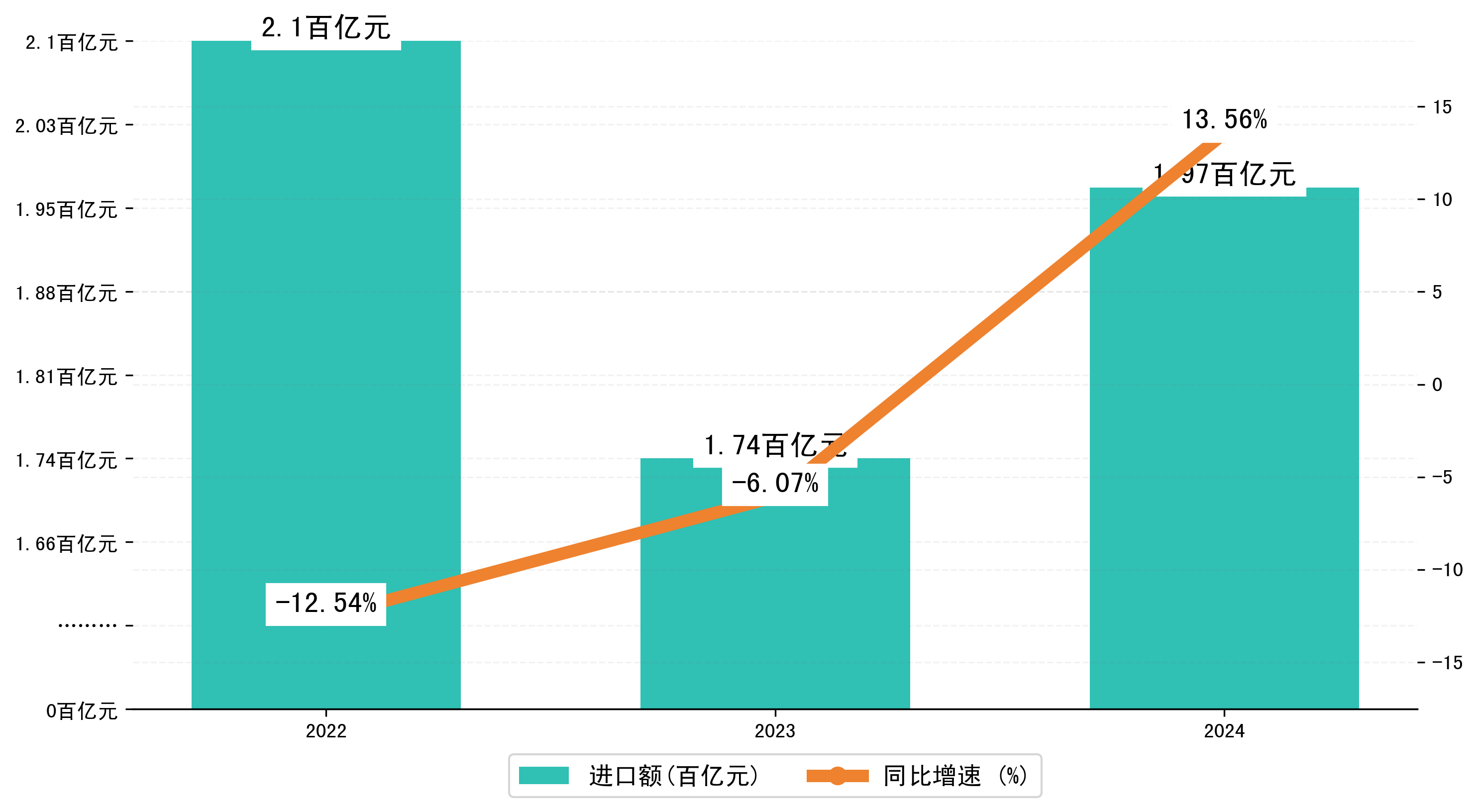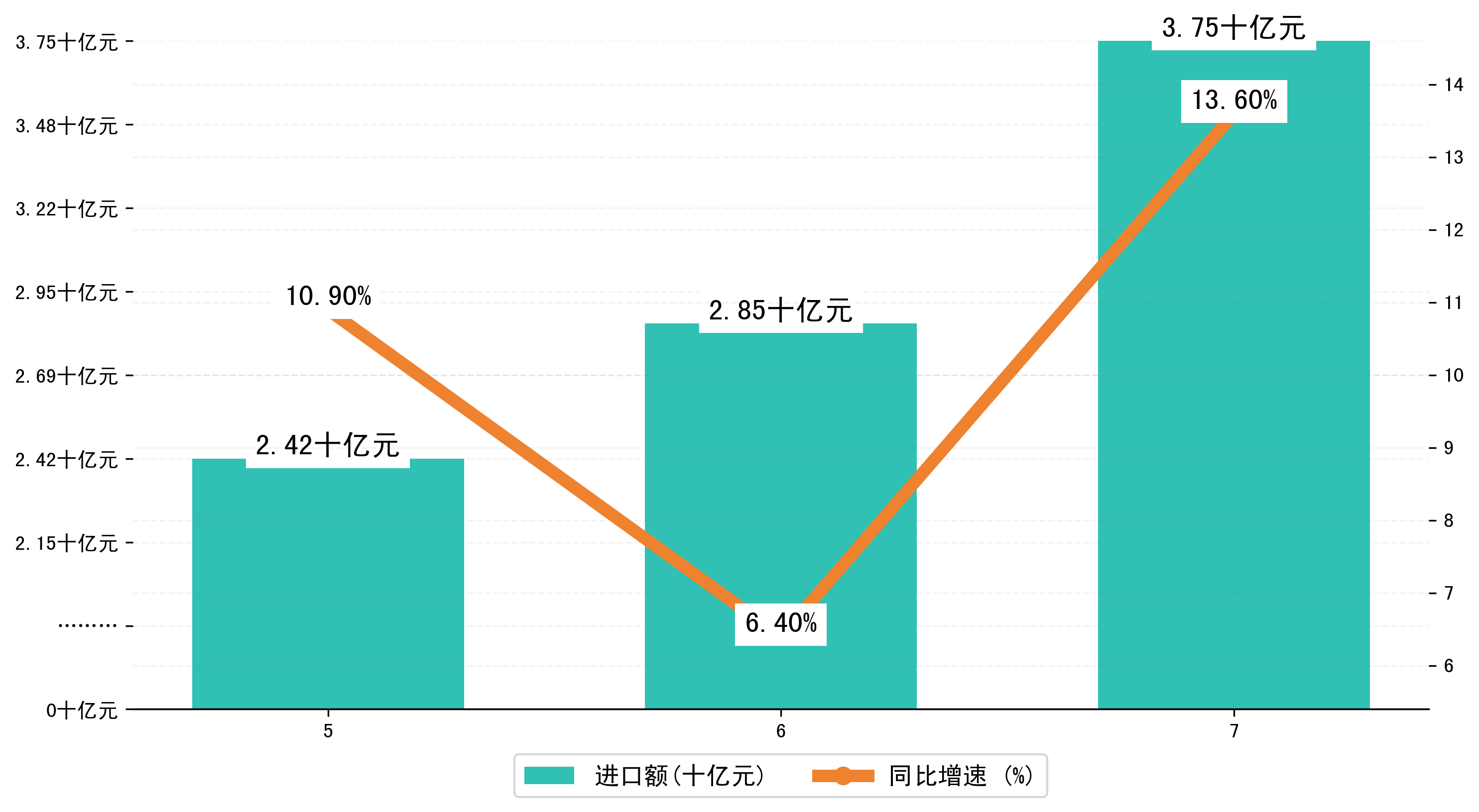 以人民币计,2024年1-7月南昌市进口额为197,1528.0035万元,相比上年同期增加了23,5359.601万元,同比增加了13.60%。