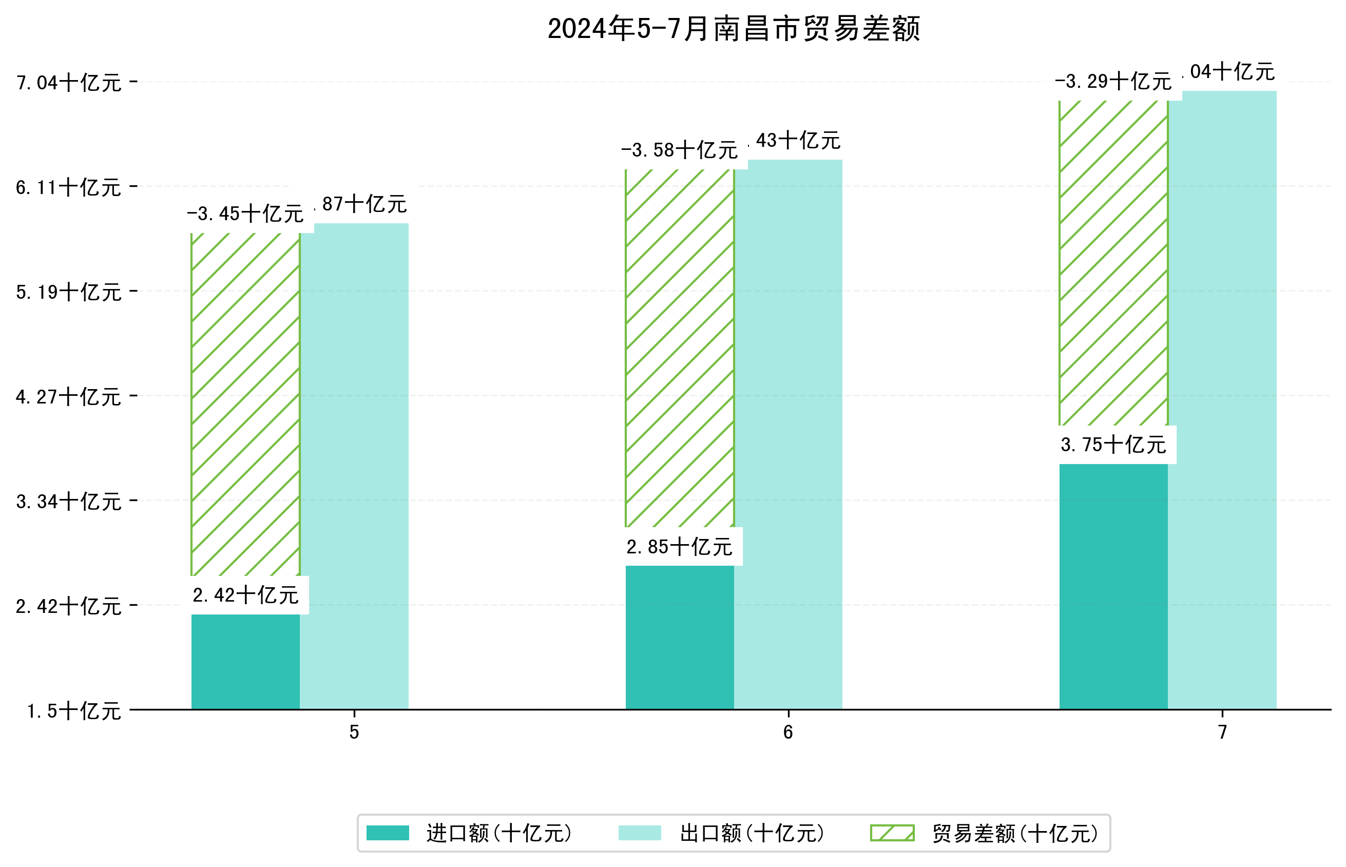 2024年7月南昌市进出口总额及进出口差额统计分析
