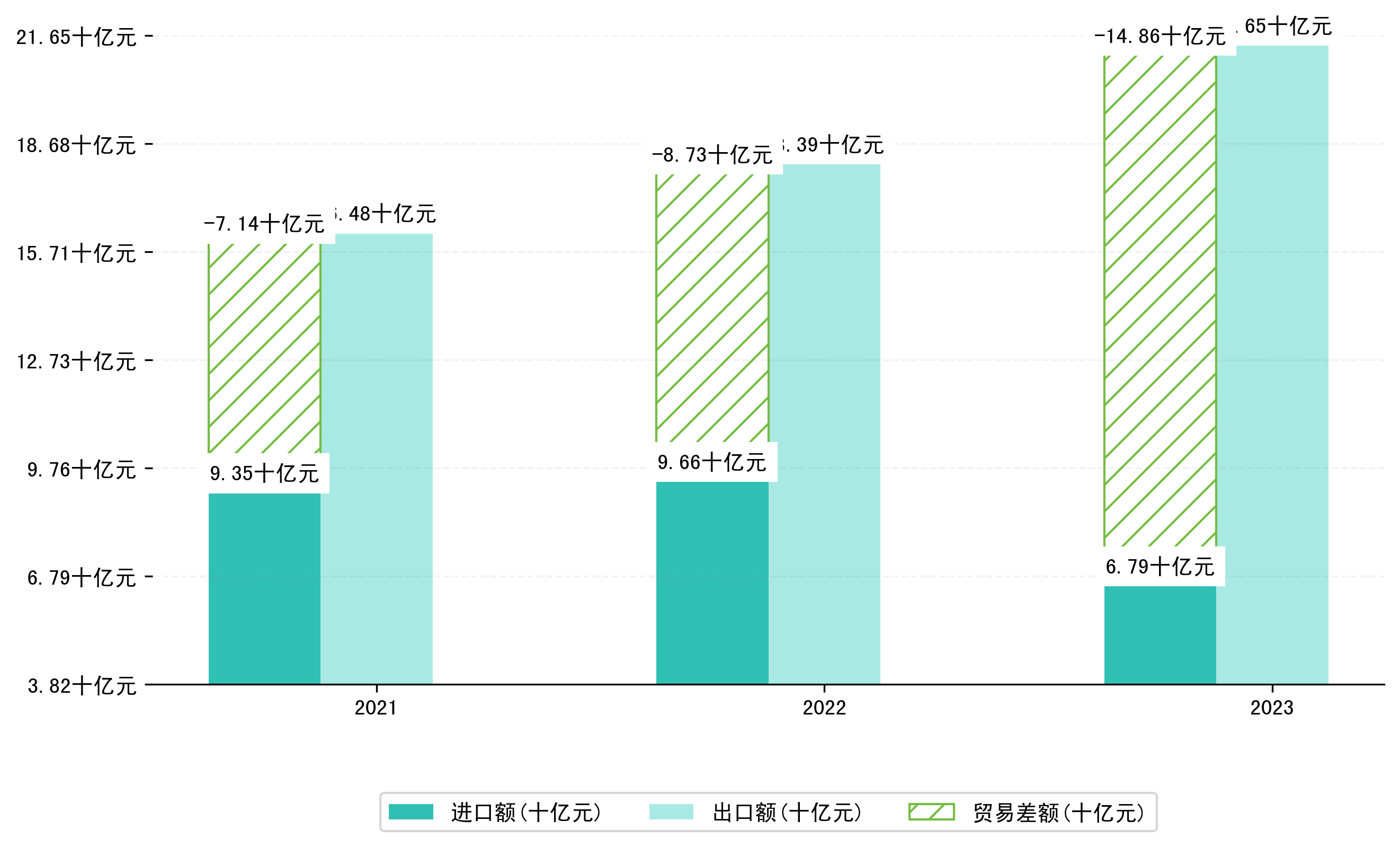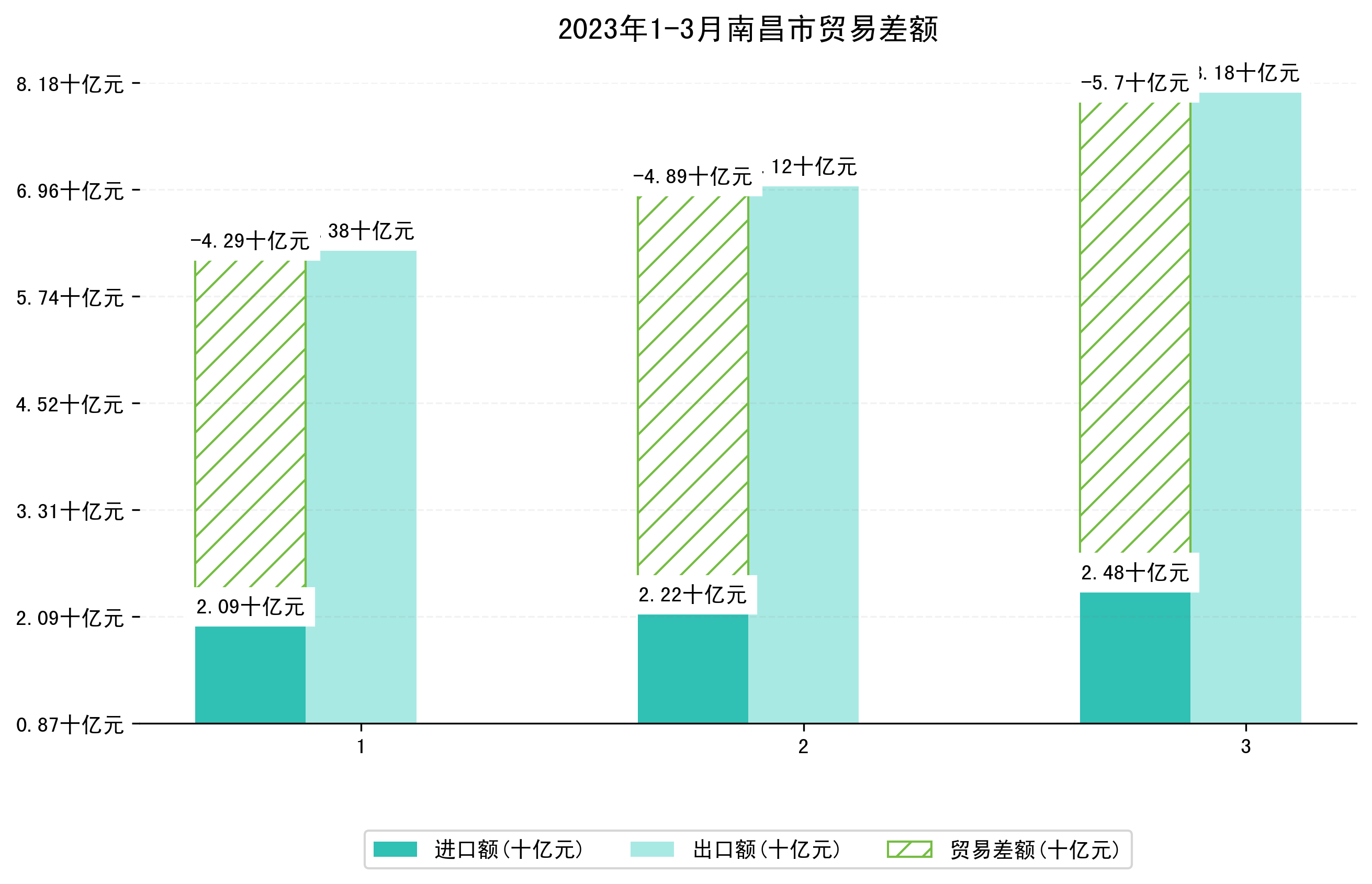 以美元计,2023年1-3月南昌市贸易差额为21,7157,9603万美元(贸易顺差),相比上年同期增加了8,0054,4771万美元,同比增加58.39%。