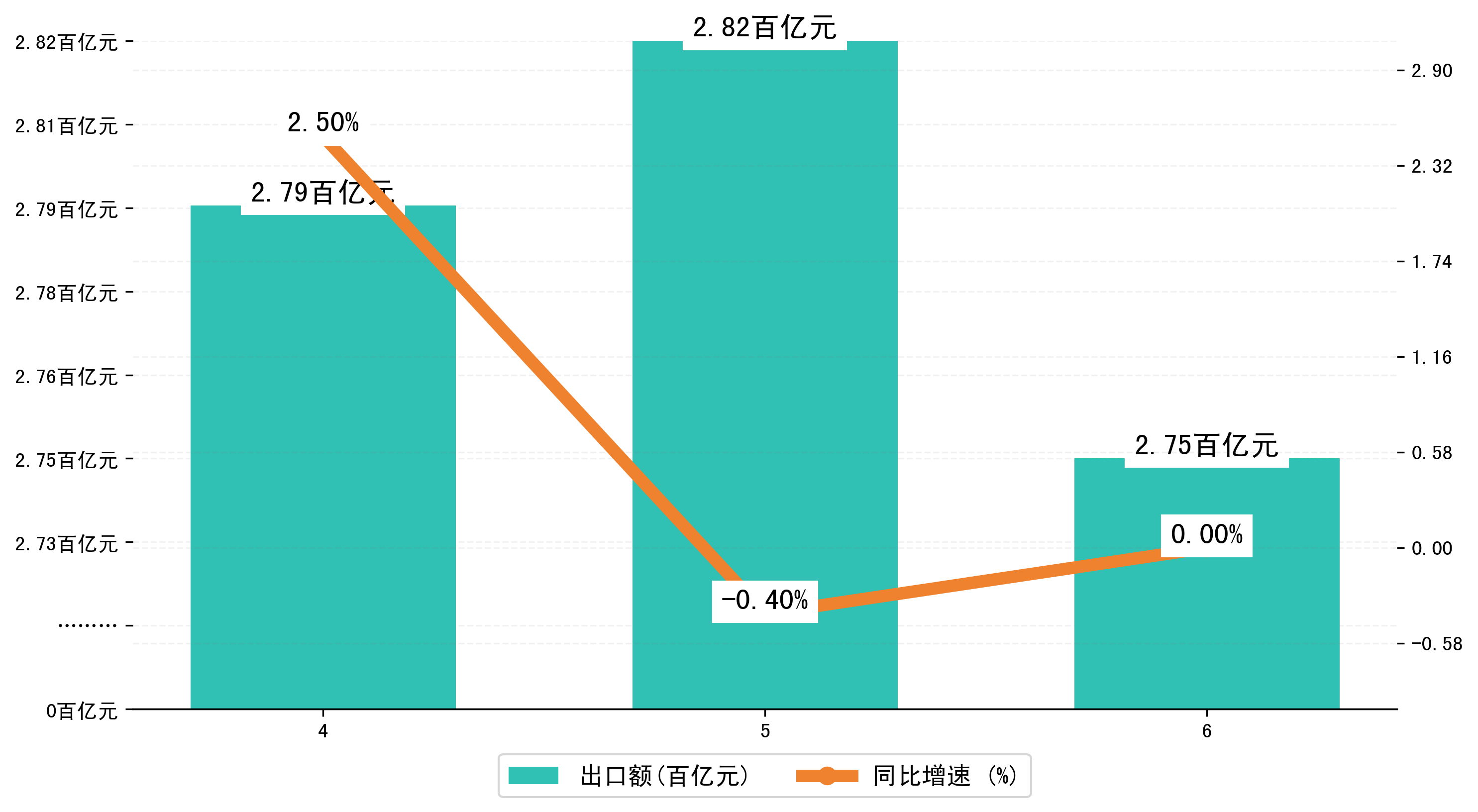 以美元计,2024年1-6月南京市出口额为234,3496.5063万美元,相比上年同期减少了11,4086.1406万美元,同比增加-3.10%。