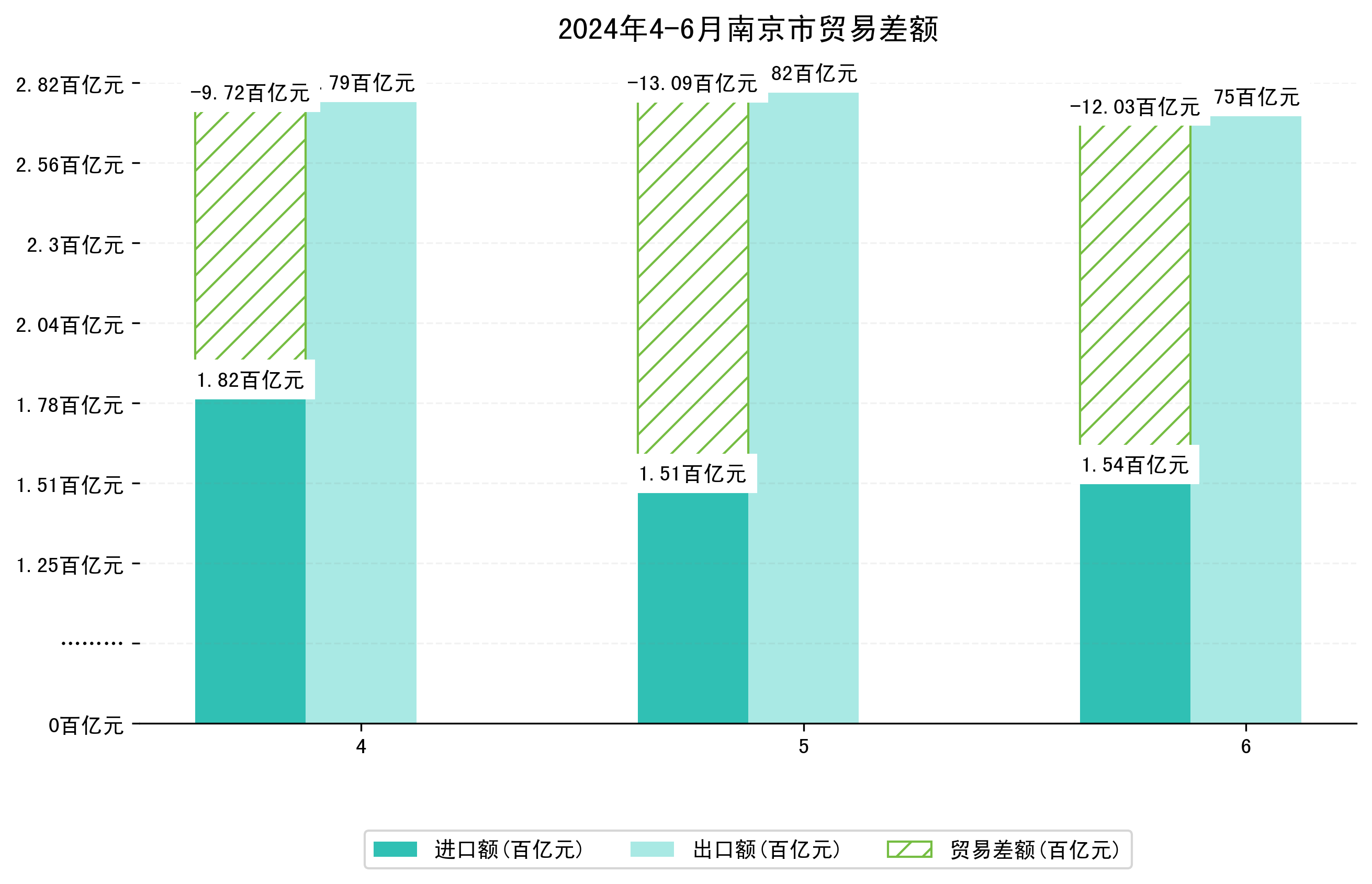 一、2024年6月南京市单月出口总额及进出口差额统计分析