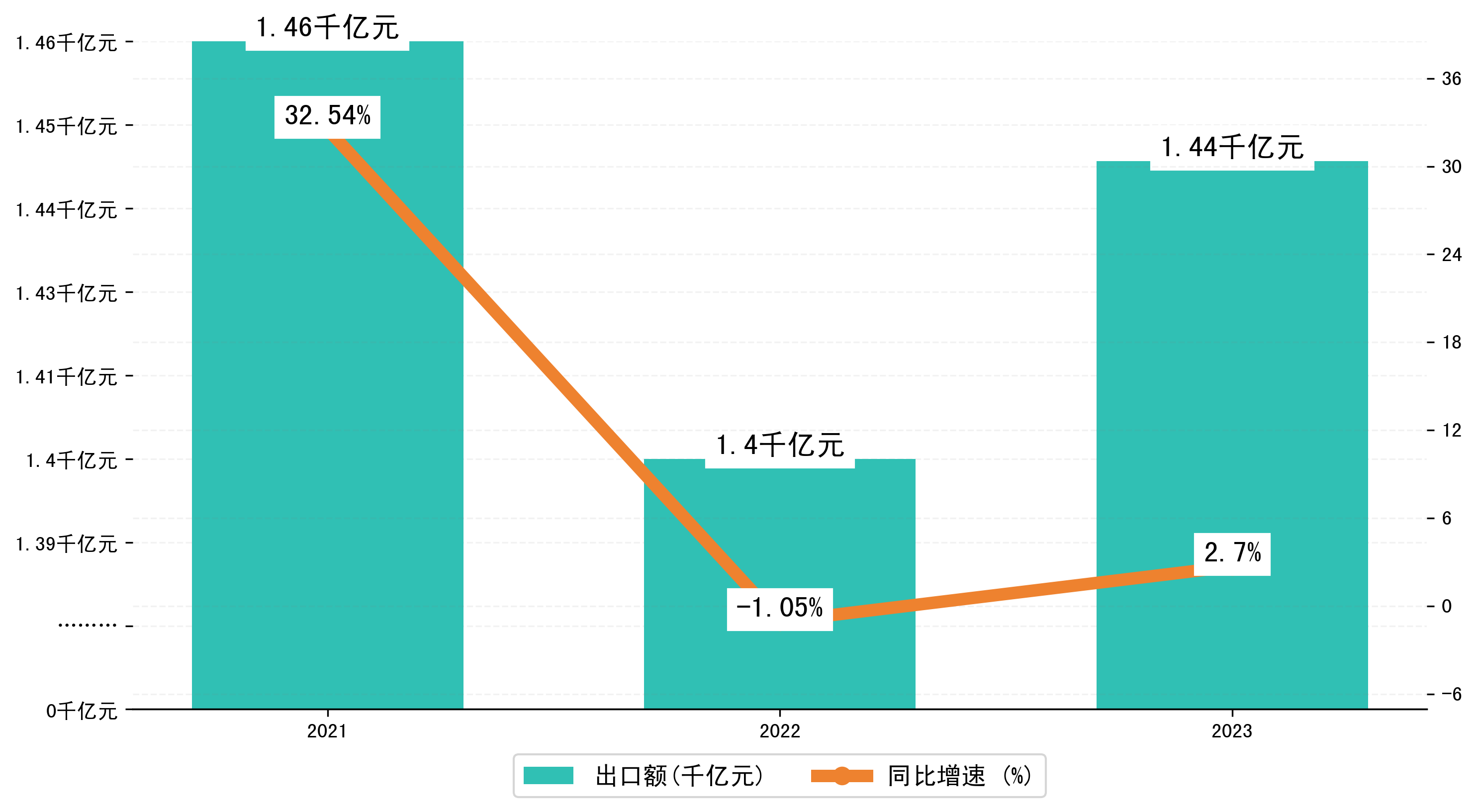 以人民币计,2023年1-5月南京市出口额为1442,0312.6944万元,相比上年同期增加了37,9051.6801万元,同比增加了5.10%。